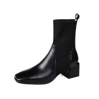 秋冬ファッション レディースショートブーツ 新しい春秋と初冬のスクエアトゥアンクルブーツ女性のニットアンクルブーツスキニーソックスブーツ弾性シングルブーツ ブーツ 靴