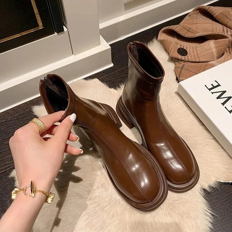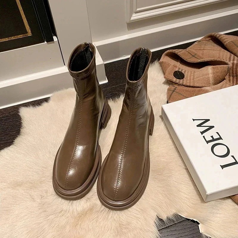 秋冬ファッション レディースショートブーツ コーヒー色小ショットブーツオールマッチレトロマーディンブーツ ブーツ 靴