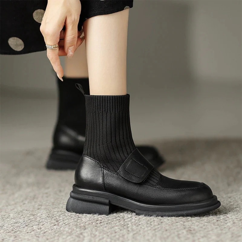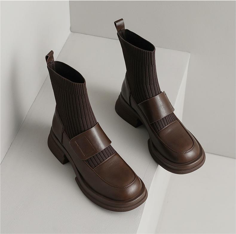 秋冬ファッション レディースショートブーツ おしゃれ キャンパス風 スタイルアップ!女性のニットアンクルブーツスキニーソックスブーツ弾性シングルブーツ スクエア靴 ブーツ 靴