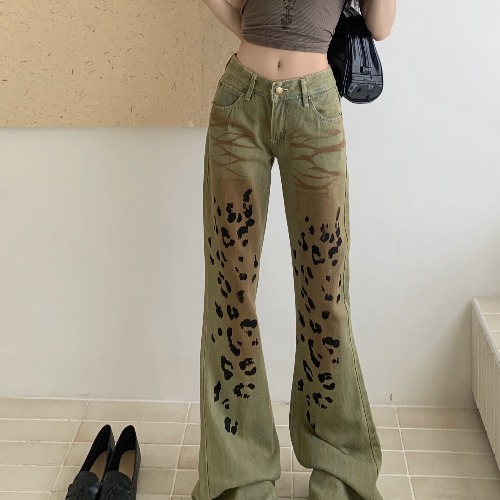 アメリカンレトロヒョウ柄マイクロラッフルパンツ夏の新作ミニギャルジーンズハイウエストスリムパンツ