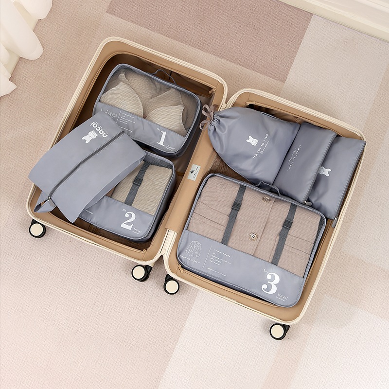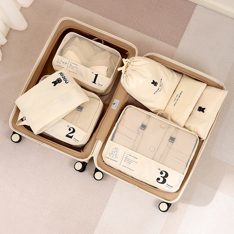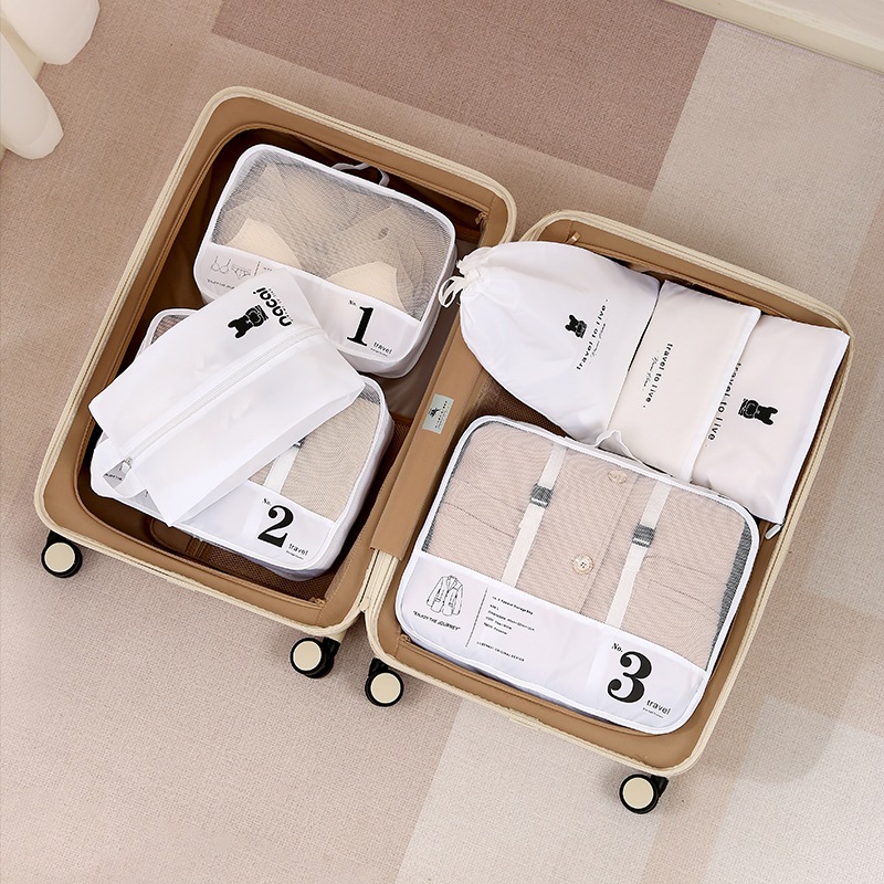 7点セット トラベルポーチ 収納ポーチ 収納バッグ 旅行 小分け 大容量 防水 着替え 衣類ラック メッシュ スーツケース 洗える 荷物 収納袋 かわいい 大きい インナーバッグ 圧縮バッグ 圧縮袋