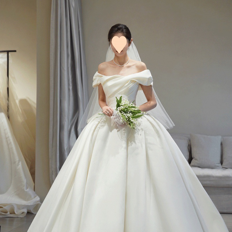 メインのウェディングドレスは小さな花嫁2025のテクスチャーワンショルダーサテンアウトベールビッグテールウーマン