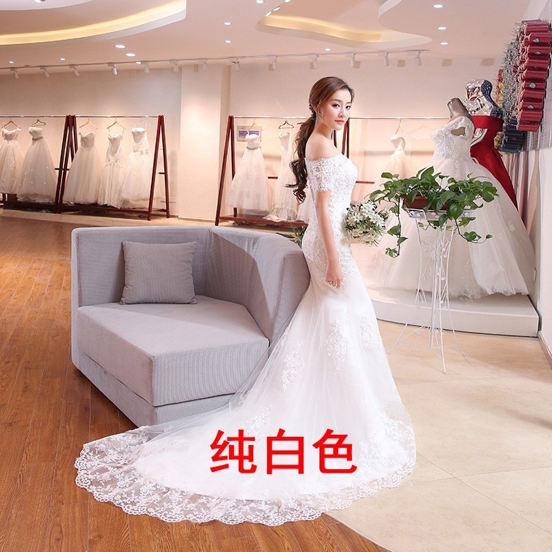 2025ウェディングドレス花嫁レトロワンショルダーテイルトリップウェディングドレス短袖