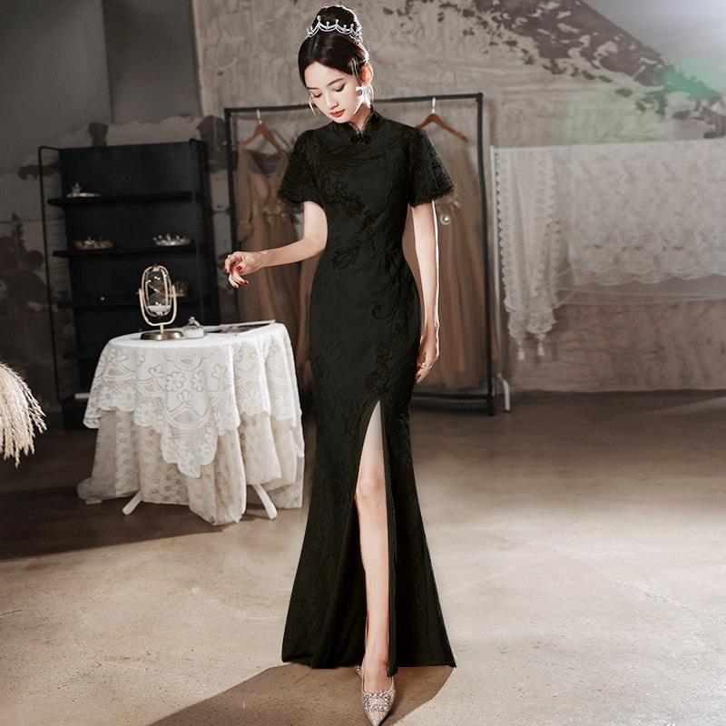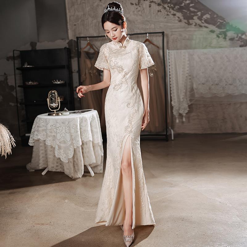 チョンサムドレスバンケット気質ホストシャンパンカラーテイルスカートハイエンドセンス