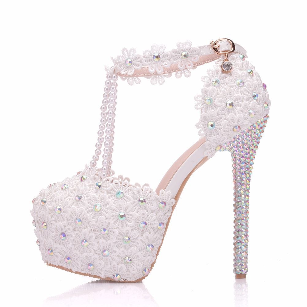 14Cmレースウェディングシューズホワイトレースの結婚式の靴