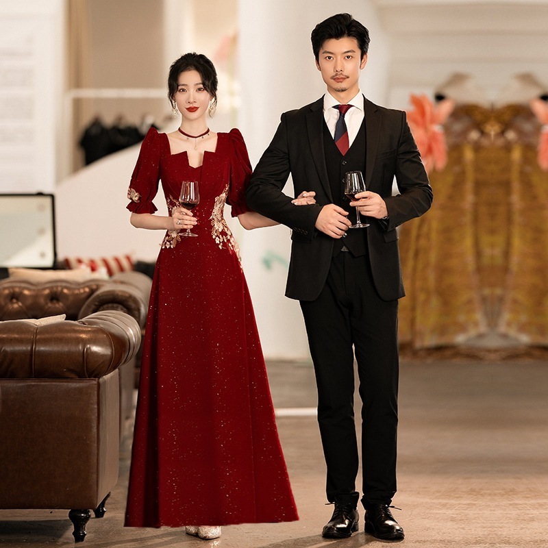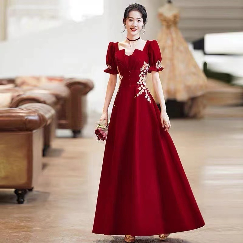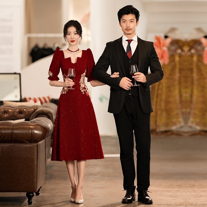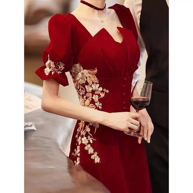 ドレス花嫁2025秋と冬の小さな妊婦はバーガンディのドレスドレスを着る