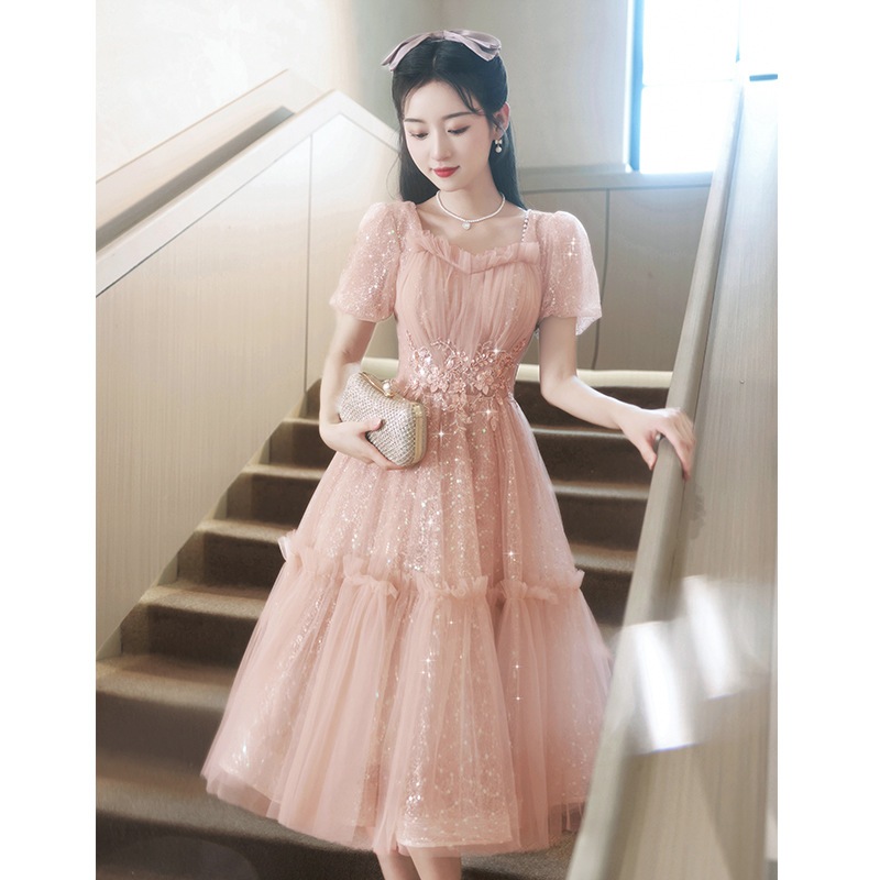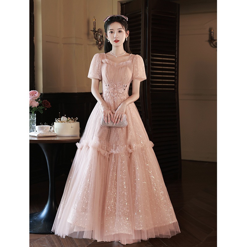 ピンクのスーツ花嫁の小さなハイエンドセンスエンゲージメント誕生日結婚式バンケットアートドレスドレス女性春