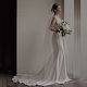 土曜日のテイルウェディングドレス気質ストラップレスブライドアウトステッチシンな屋外芝生の旅行ドレス
