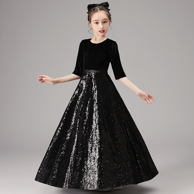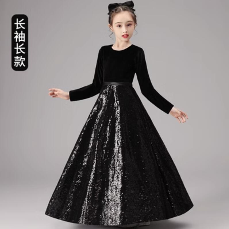 女の子と子供のバイオリンピアノのグレーディングパフォーマンスドレスビッグチルドレンズベルベットヘビー業界のスパンコール長いプリンセスドレス