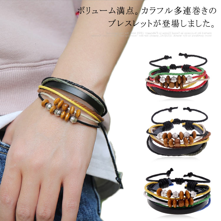 本革 レザー ブレスレット ミックスカラー ペアOK ブレス レディース メンズ 腕輪 エスニック