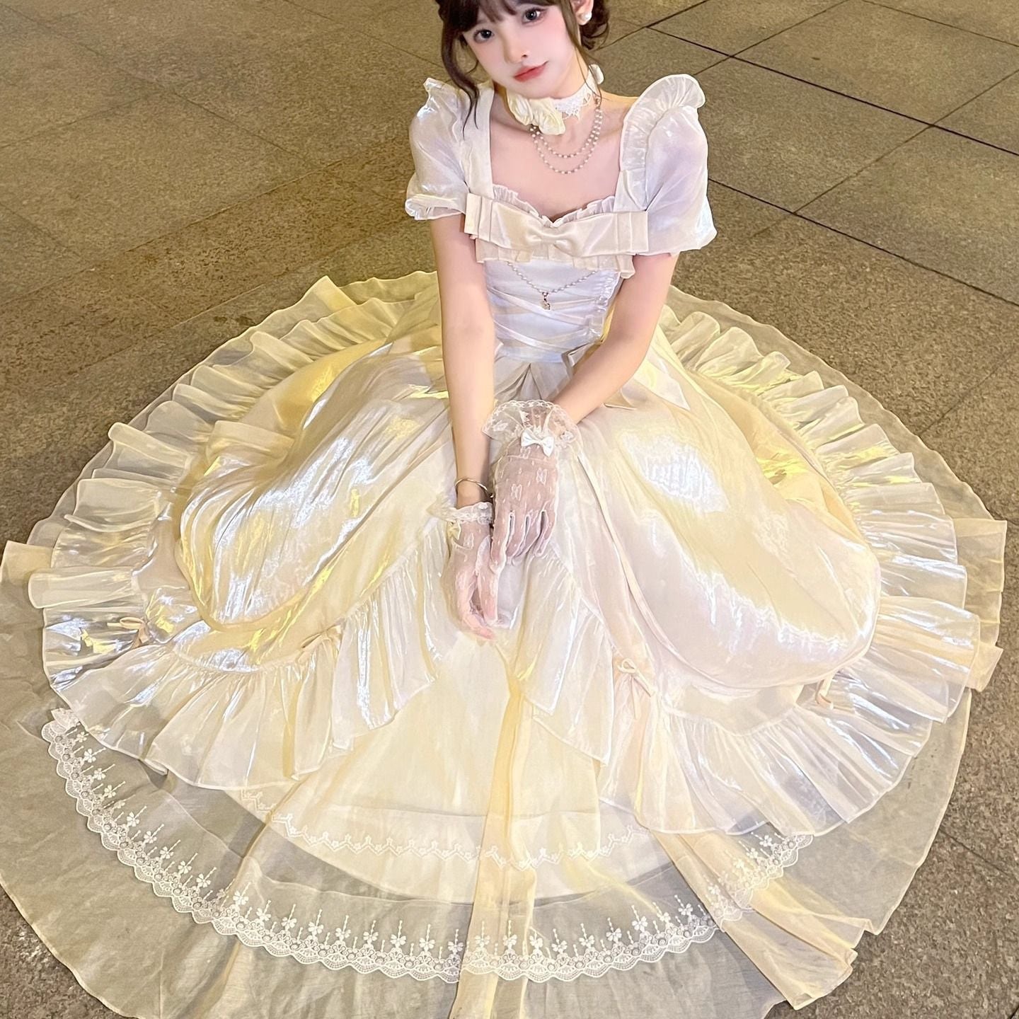 生成色の花の結婚式のロリータドレスドレスロリータ甘くてエレガントな誕生日プレゼント