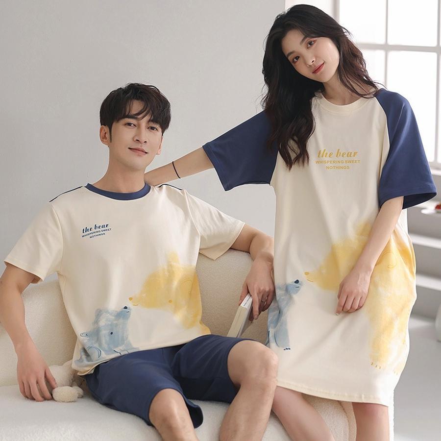 セットアップ カップルペアルック 綿 ルームウェア ロングズボン 春秋夏上下セット ペアパジャマ 半袖 男女