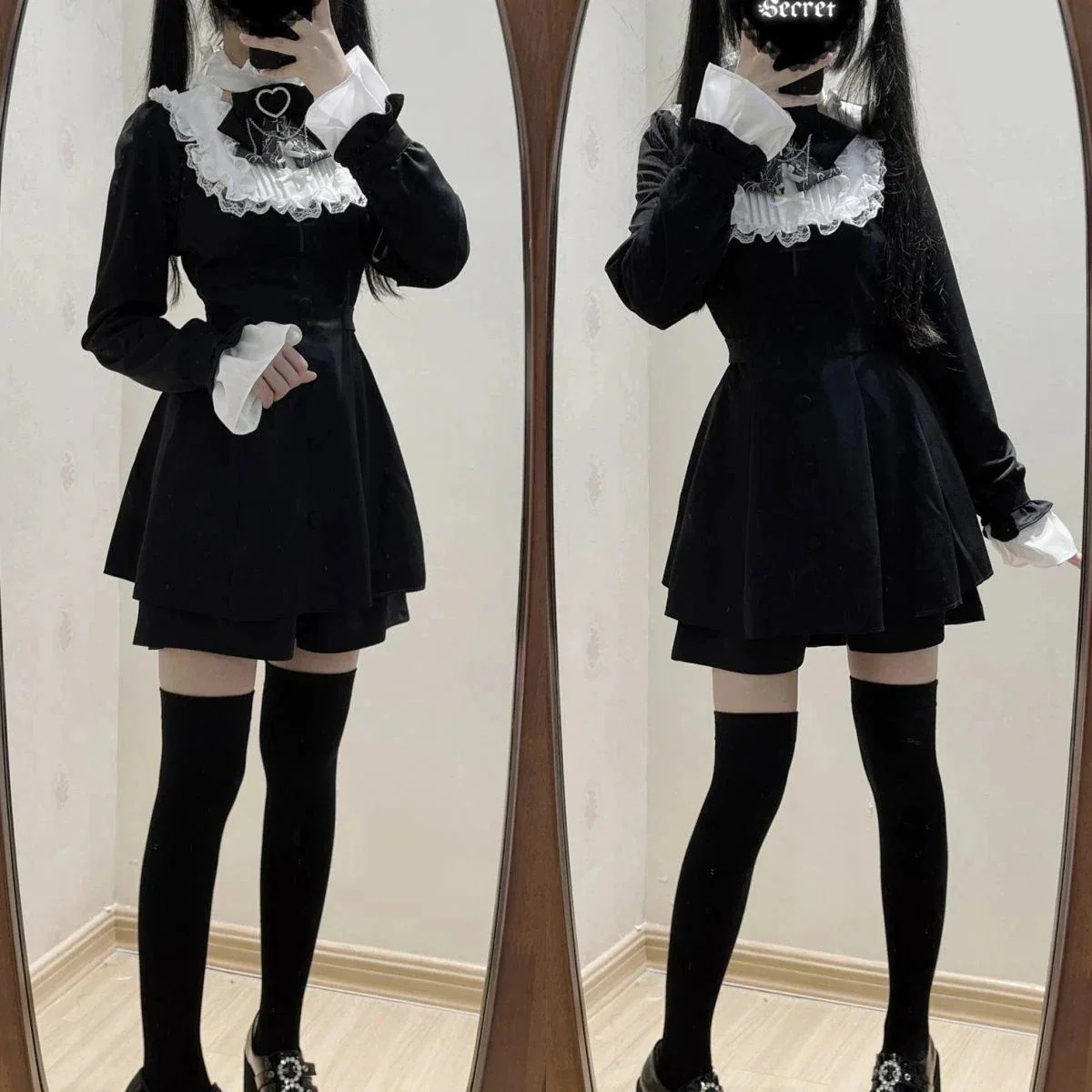 ロリータ セット 地雷系 レース 長袖 に刺繍 腰をすぼめる つぎて 量産型 つぼみ服