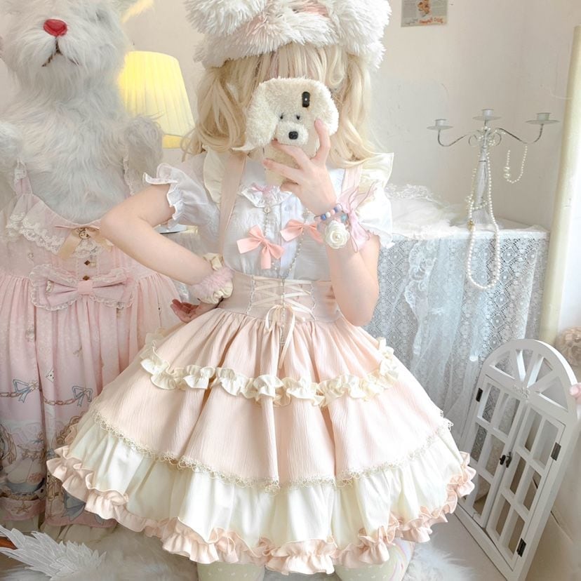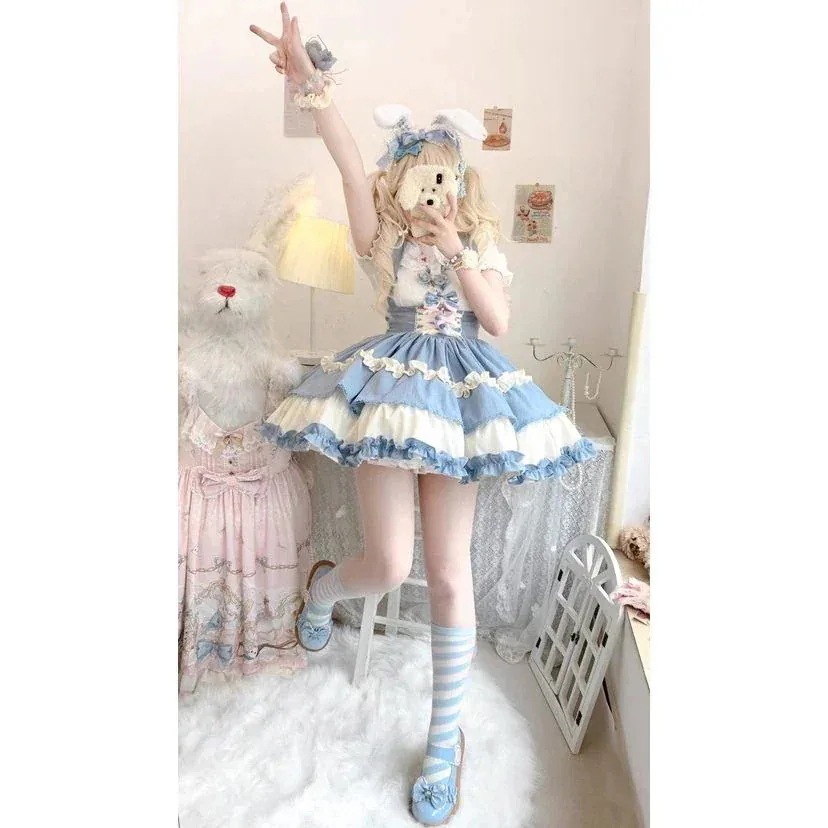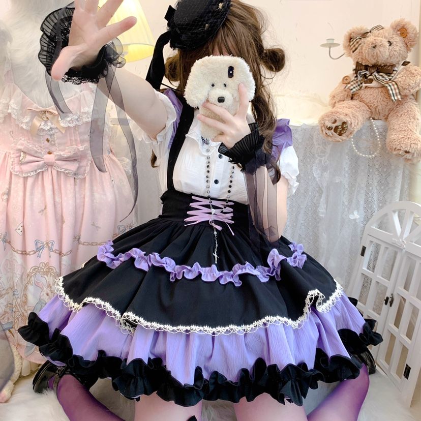 人気No.1 かわいい犬ショートSKアイドルロリータストラップスカートドールネックシャツ半身スカート 可愛い 洋装 仮装 大人 文化祭 復活祭