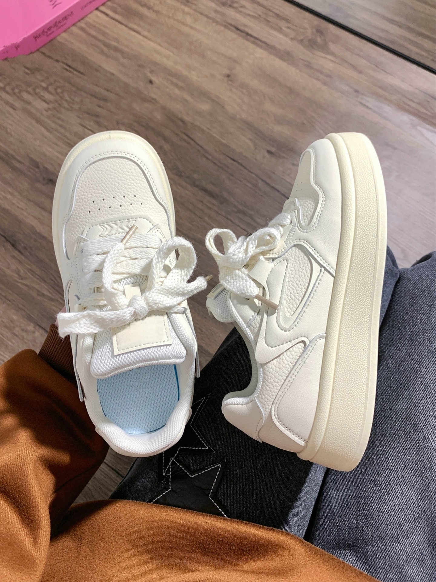 女子白靴女子2025秋の新型婦人靴復古厚い底学生百合靴小衆オリジナル板靴