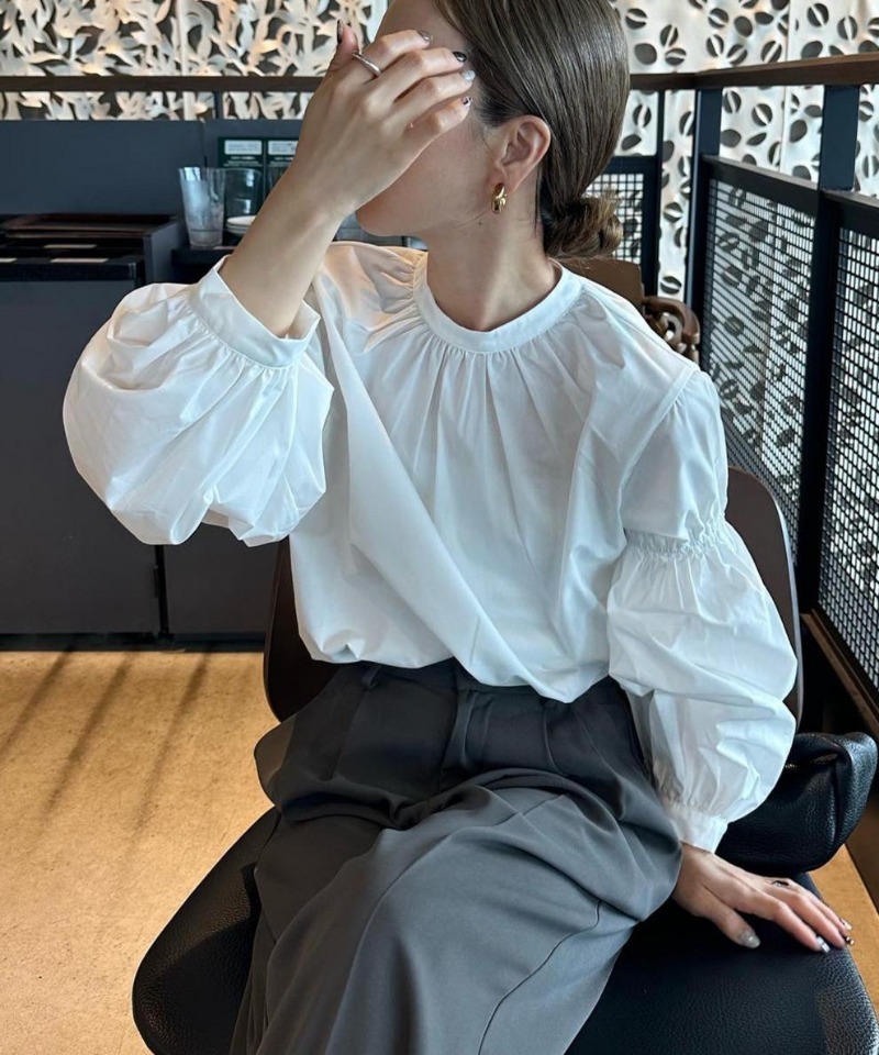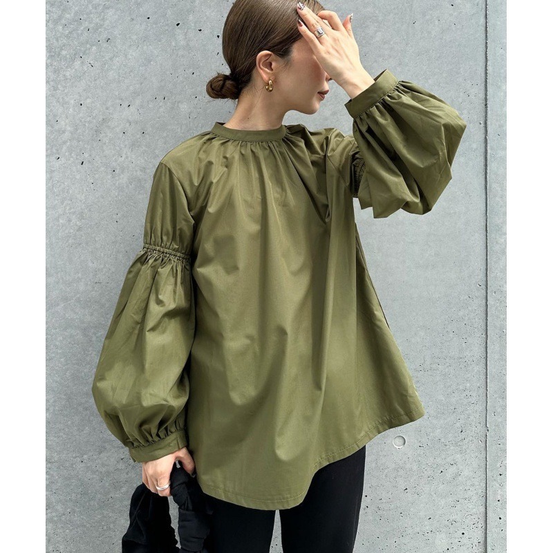 シャツ パフスリーブ 夏 チュニック レディース ブラウス 袖ギャザー シャツ 長袖 ギャザー トップス シャツブラウス スタンドカラー ボリュームスリーブ