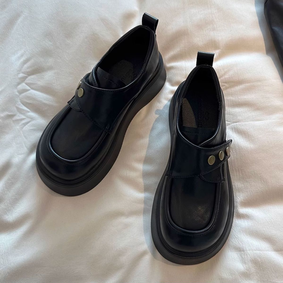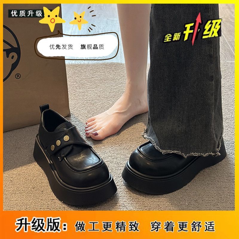 女性の気質のためのブリティッシュスタイルの黒い太った高さのハイハイハイレザーシューズシングルシューズ2025新しい春と秋のメアリーゼンローファー