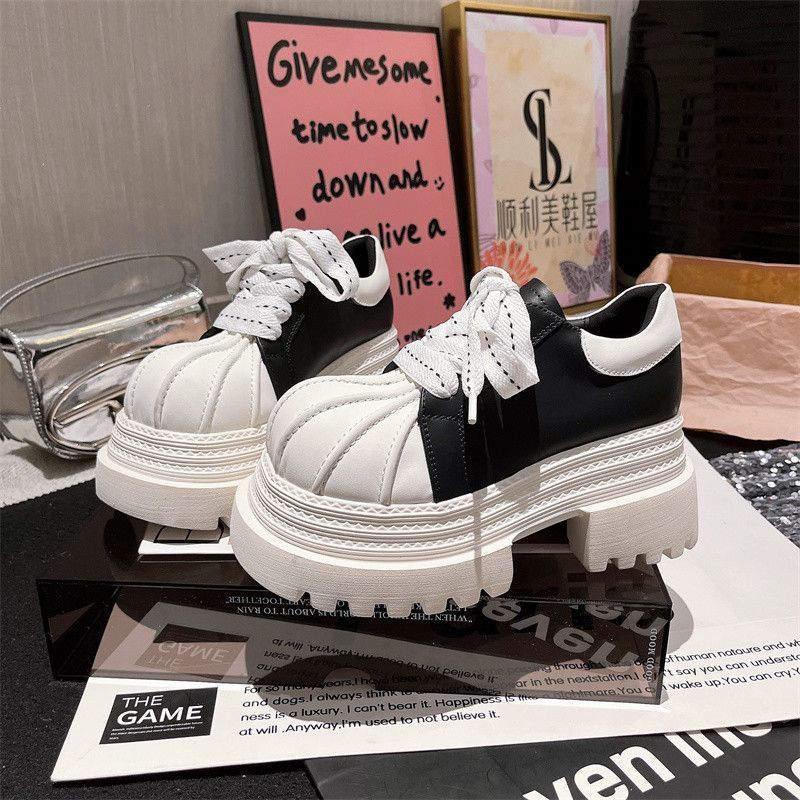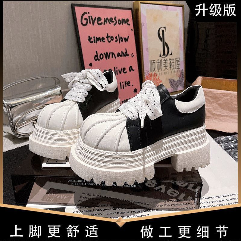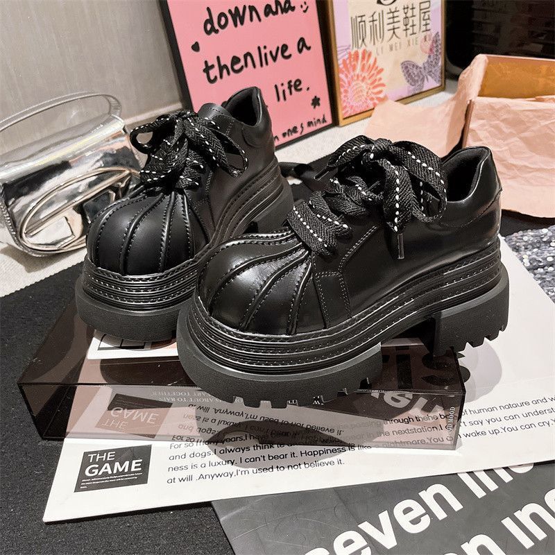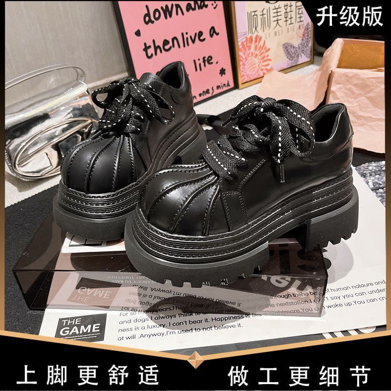 11 2025女性のための新しい厚さの溶けた大物の靴ソフトレザーレースアップニッチカジュアルシューズを高めます 1
