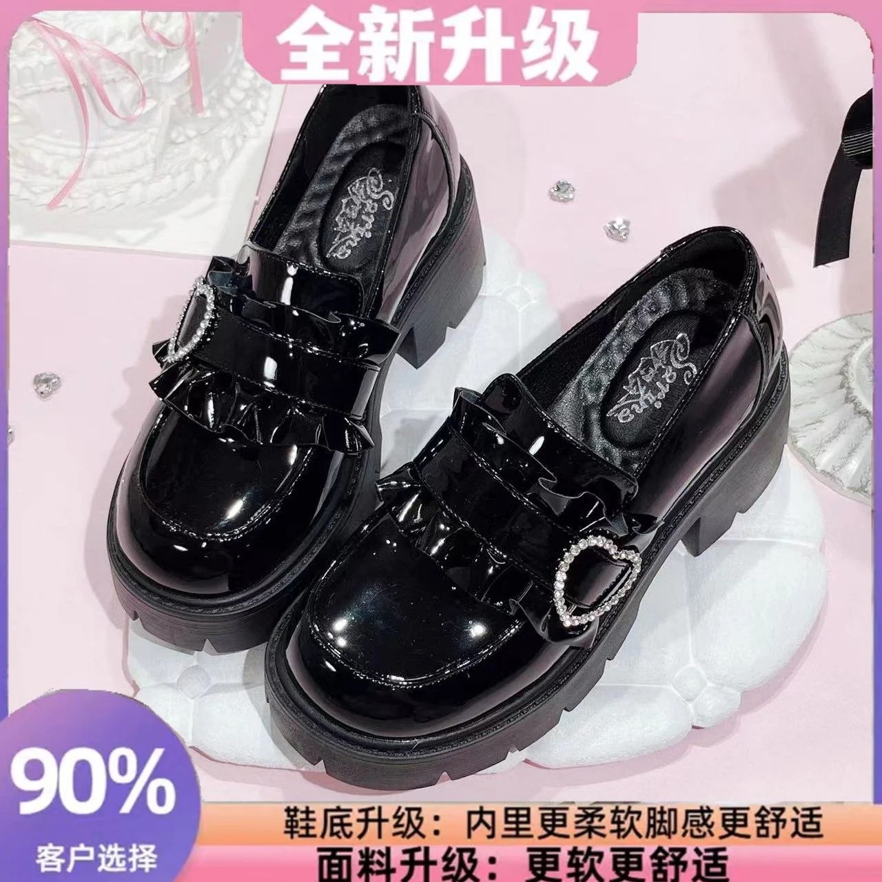 厚い底のレース1フィートシングルシューズフランスの甘い大学の軽量と汎用性のあるラインストーンjkスモールレザーシューズ