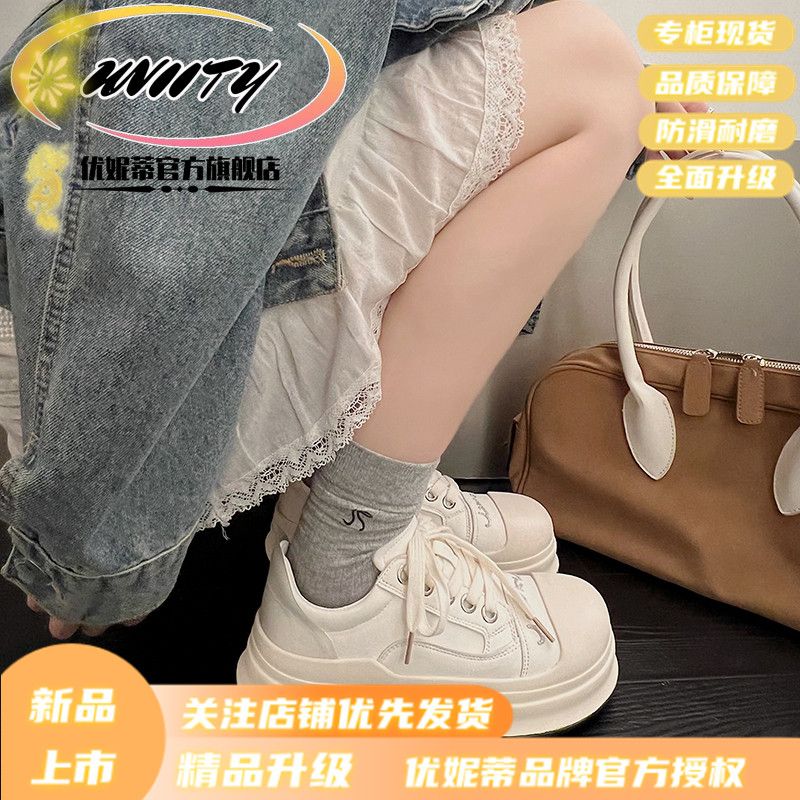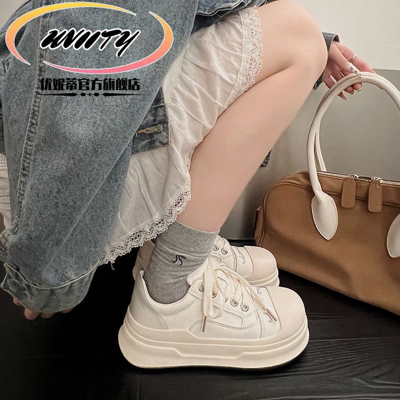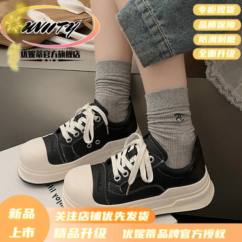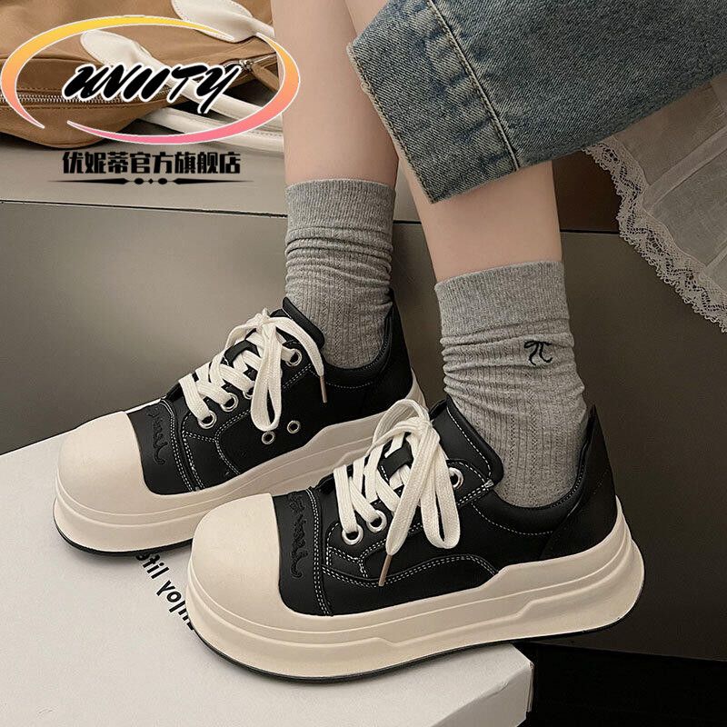 スポンジケーキ巨大なかわいい丸いつま先の色のつま先のカラーブロックアップレースアップビッグトーシューズ女性の新しい太い靴底汎用汎用カジュアルボードシューズ