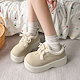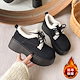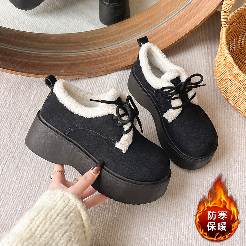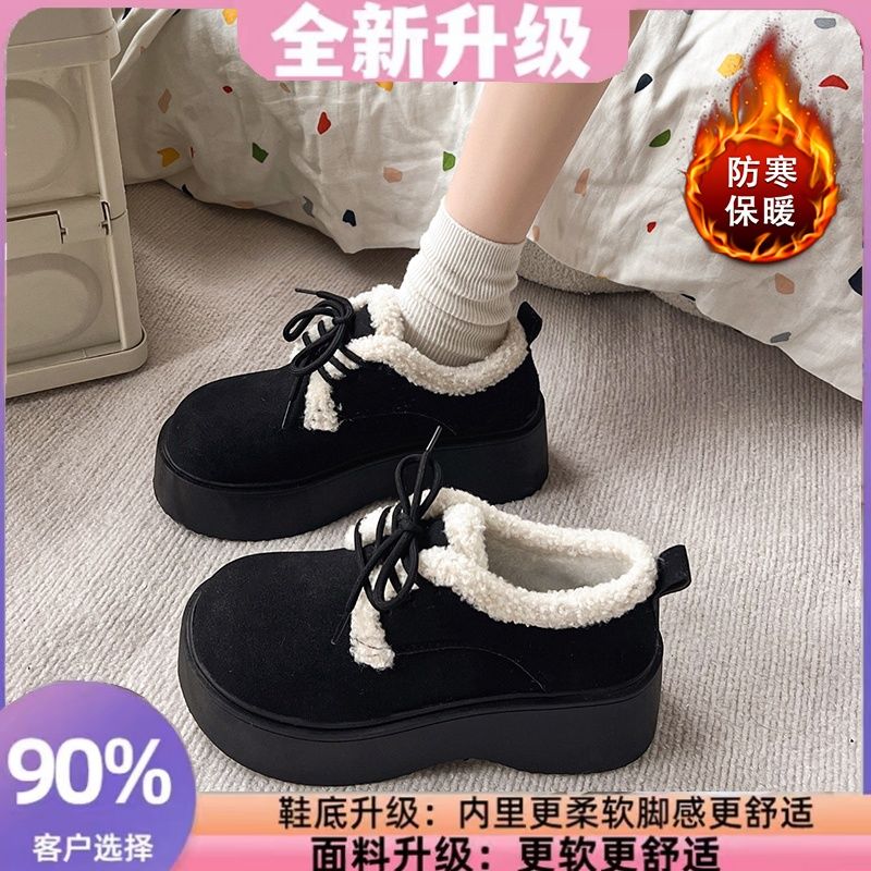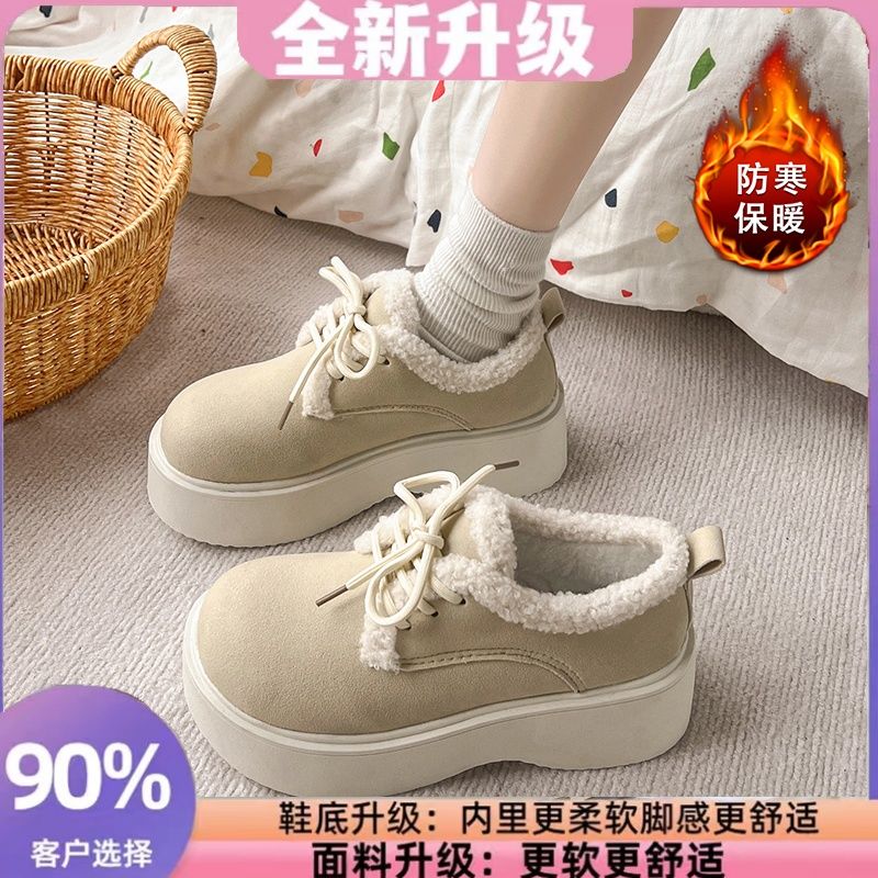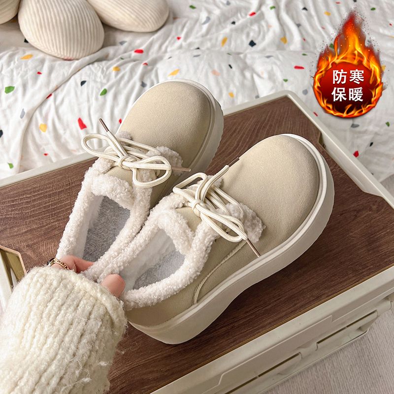 外出中の滑り止め冬のための新しいカジュアルシューズスポンジケーキの唯一のフレンチラムウールとベルベットの温かいローファーコットンシューズ