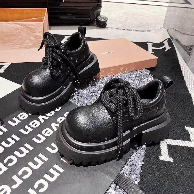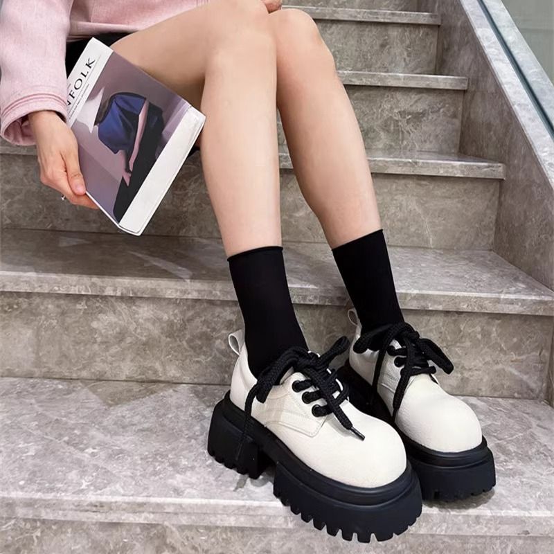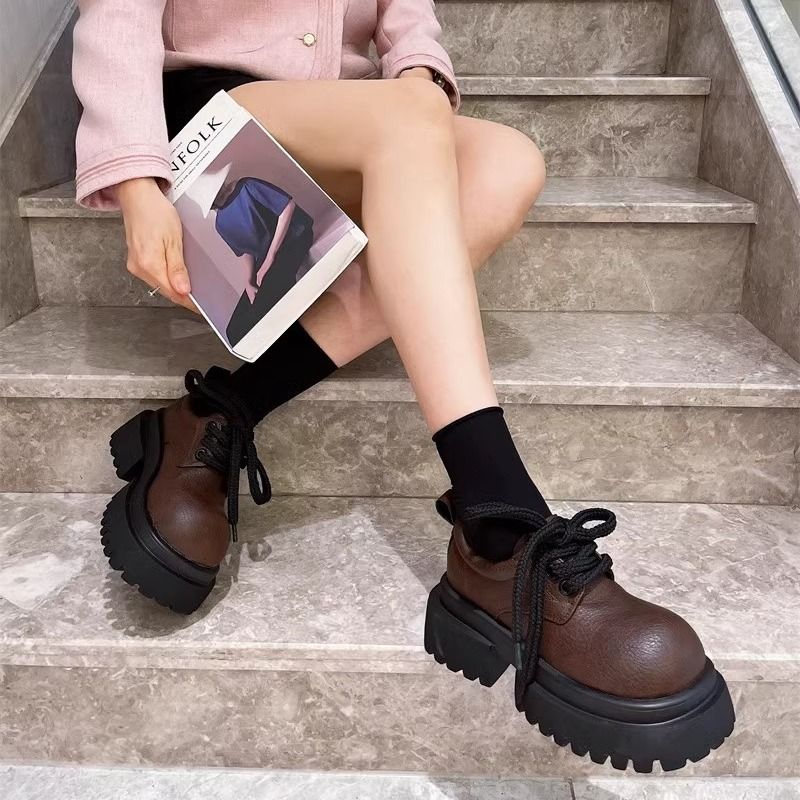 オリジナルレトロ初秋の新しいスタイルスポンジケーキソールハイシングルシューズjkトレンディキャンパススタイルロックレースレザーシューズ