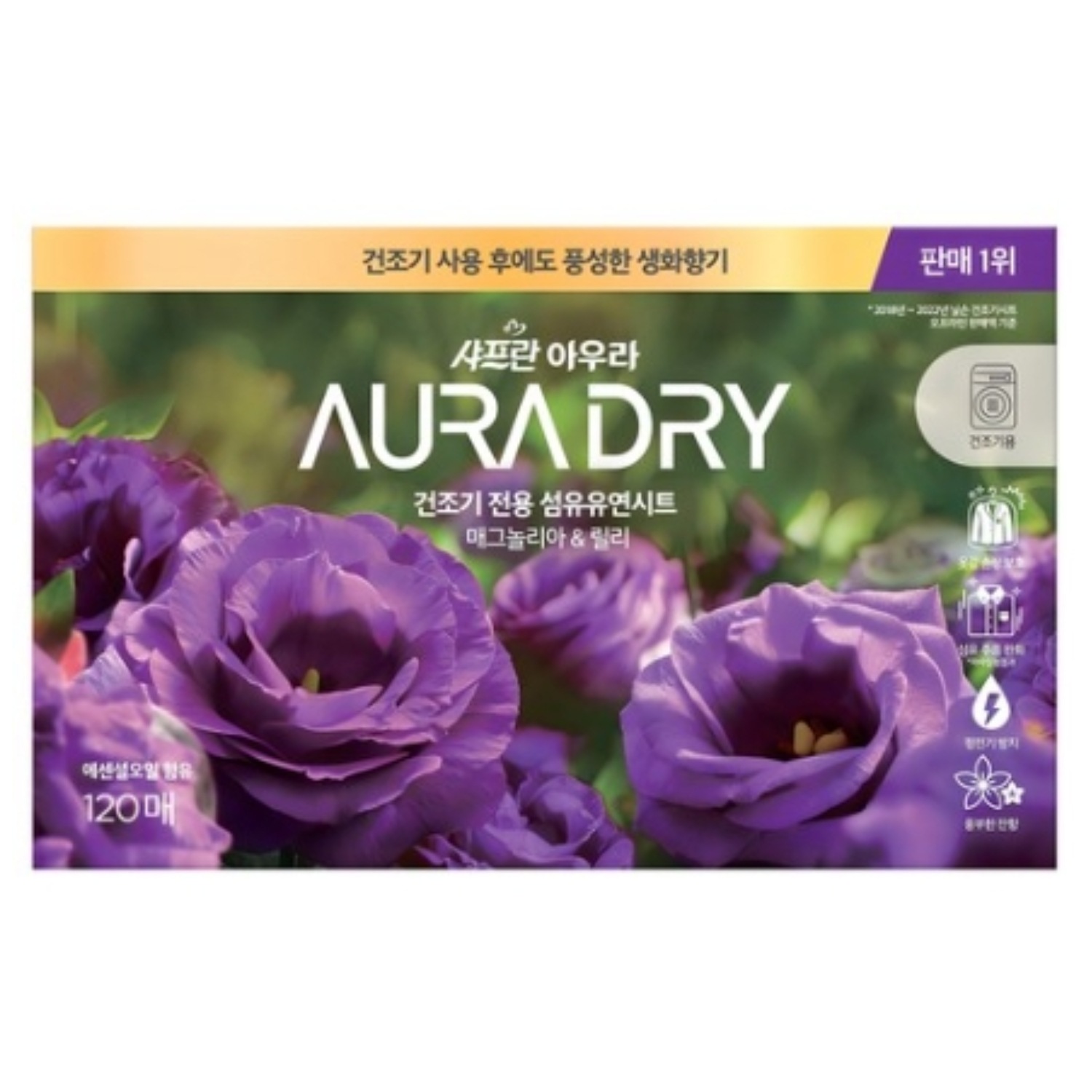 アウラドライシート 柔軟剤 マグノリア&リリーの香り 120枚入り 韓国柔軟シート 大容量 衣類用芳香シート 静電気防止 洗濯用品