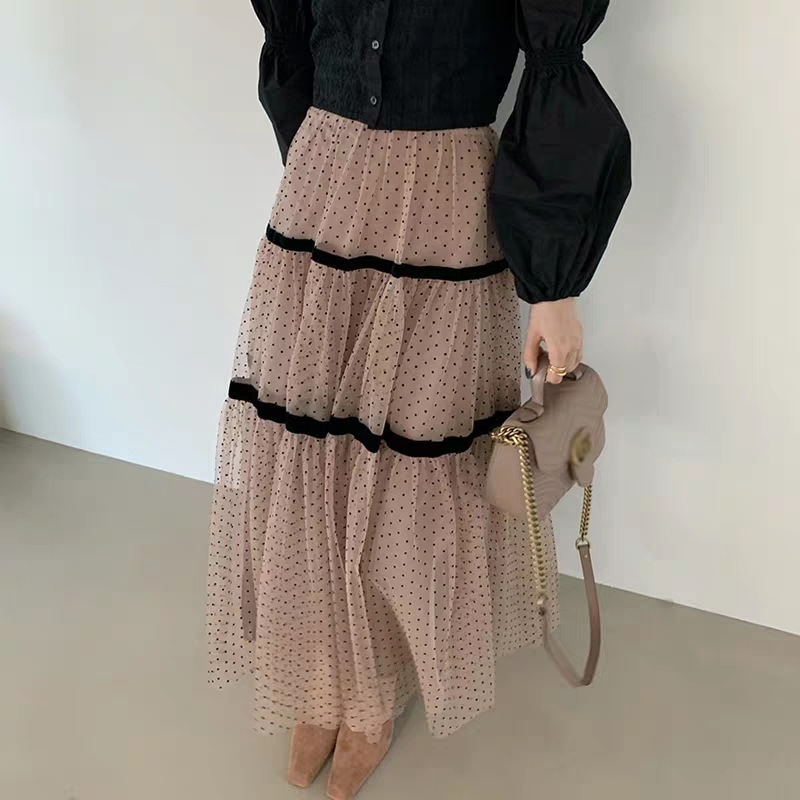 【大人可愛い】レディース ハイウエスト プリーツ ロングスカート Aライン ブラック (秋の新作)