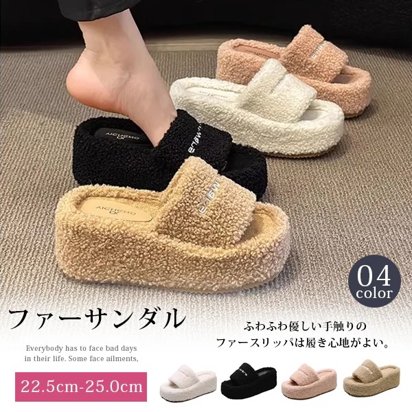 ファーサンダレディーハイヒーウェッジソー厚歩きやすサンダミューファーシューおしゃ厚底サンダふわふもこもこ