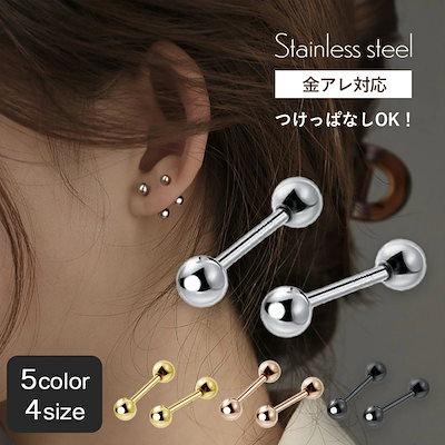 ピアス つけっぱなし つけっぱなしピアス レディース ゴールド ネジ式 シルバー ブラック シンプル サージカルステンレス アレルギー 18金 k18 小ぶり 2mm 金属アレルギー対応 小さい 軟骨