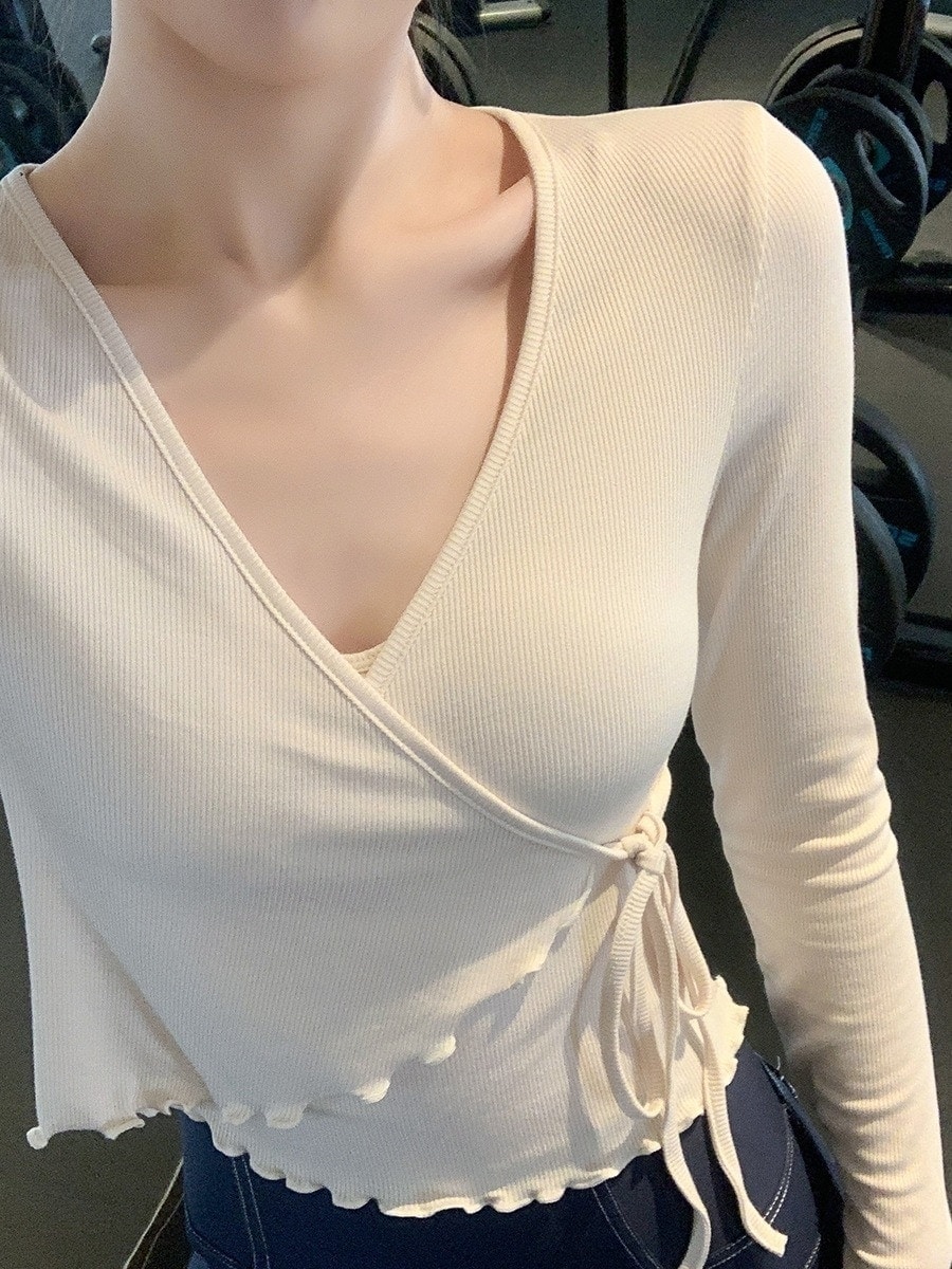 春 夏 ファッション レディースヨガウェア ヨガトップス 運動 長袖 Vネック シャツタイト ピラティス トレーナー レディース ヨガウェア フィットネスウェア