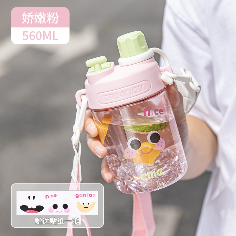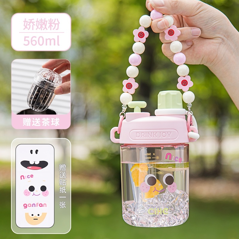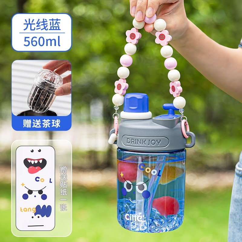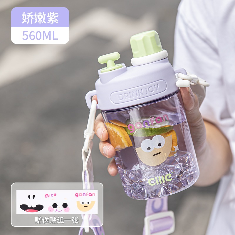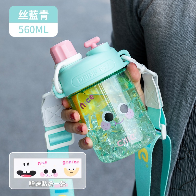 女の子用Xileストローカップ子供用夏用ウォーターカップかわいいポータブルカップ高見えするダブルドリンク落下防止プラスチックケトル