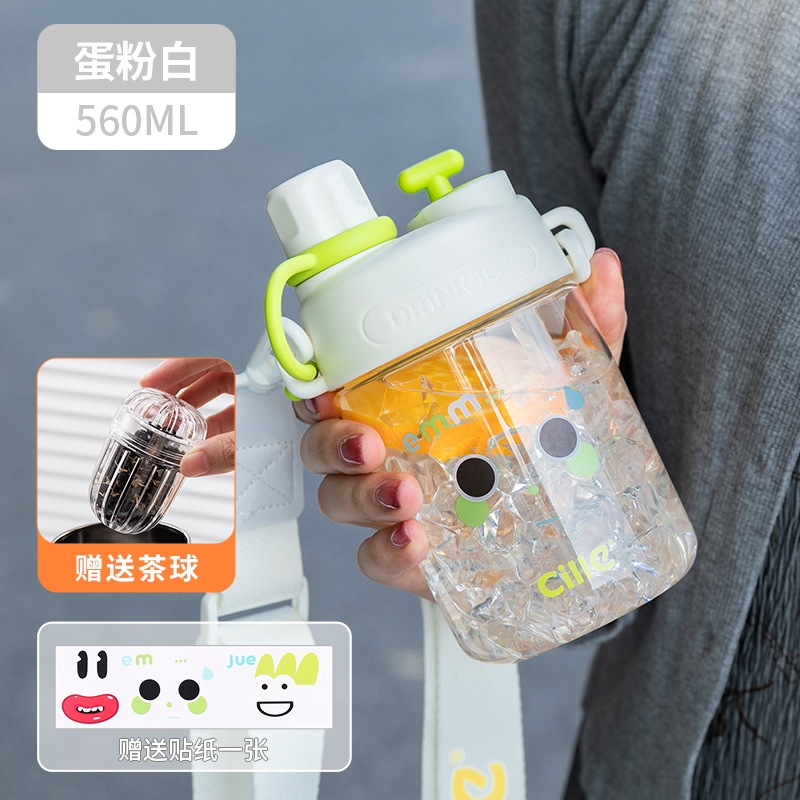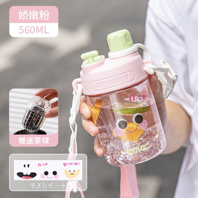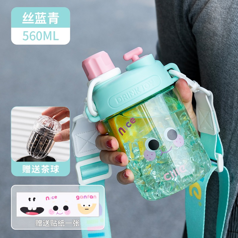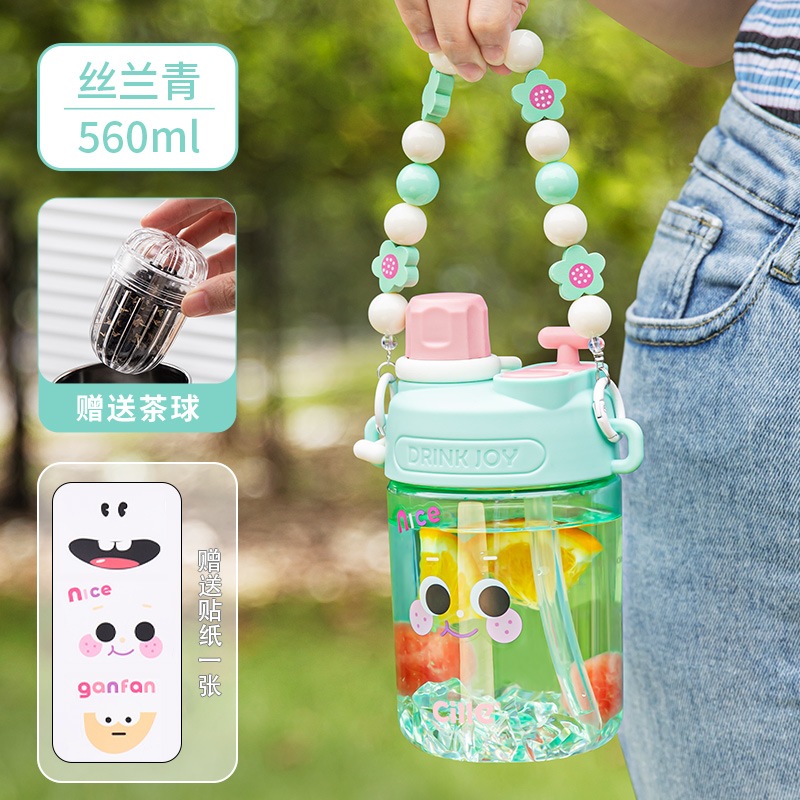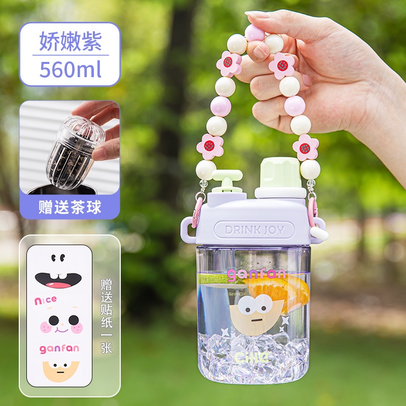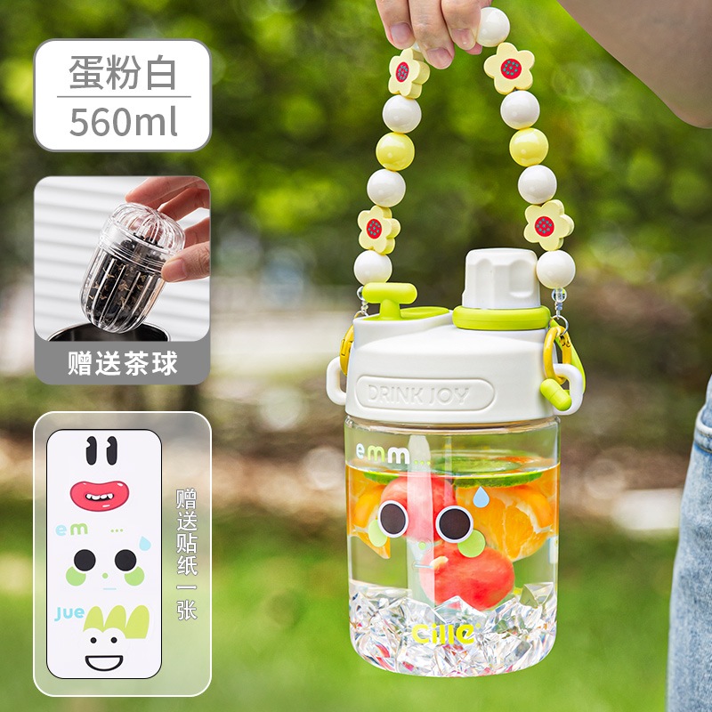女の子用Xileストローカップ子供用夏用ウォーターカップかわいいポータブルカップ高見えするダブルドリンク落下防止プラスチックケトル