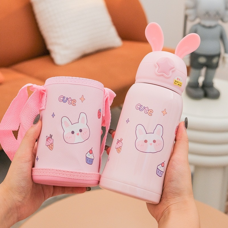漫画の子供用魔法瓶カップストロー水カップ男の子と女の子幼稚園ポータブルクロスボディかわいいやかん恐竜