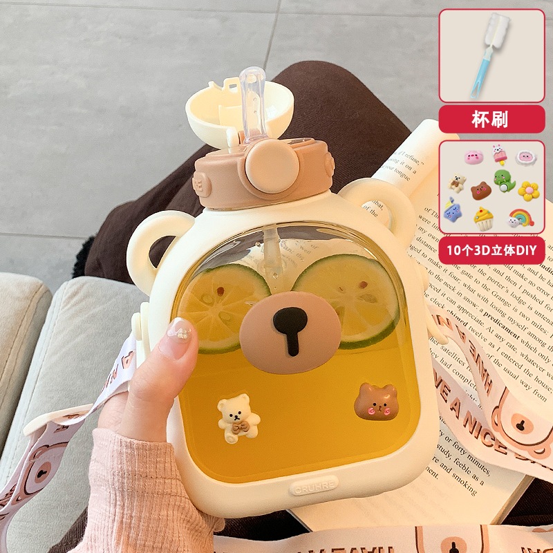 正方形のウォーターカップ見栄えの良い女の子の夏のかわいいストローカップ学生女の子大人向けのシンプルなクロスボディポータブルカップ
