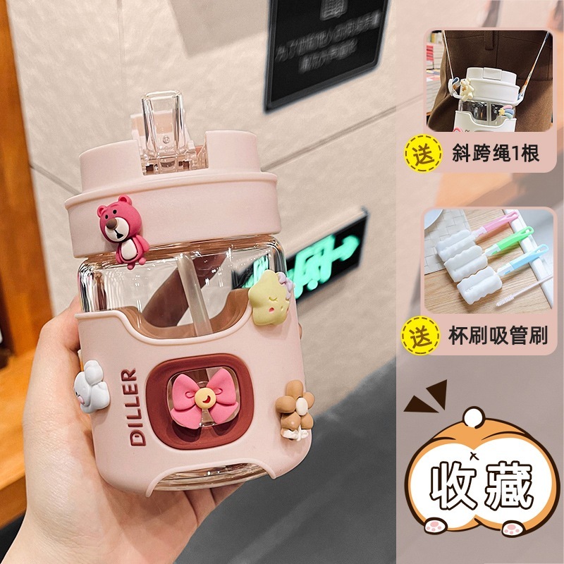 高ホウケイ酸ガラスカップ 2025 容姿端麗な女性向けネットセレブ人気ウォーターカップ コーヒーカップ ダブルドリンク付き かわいいストローカップ