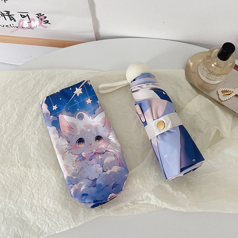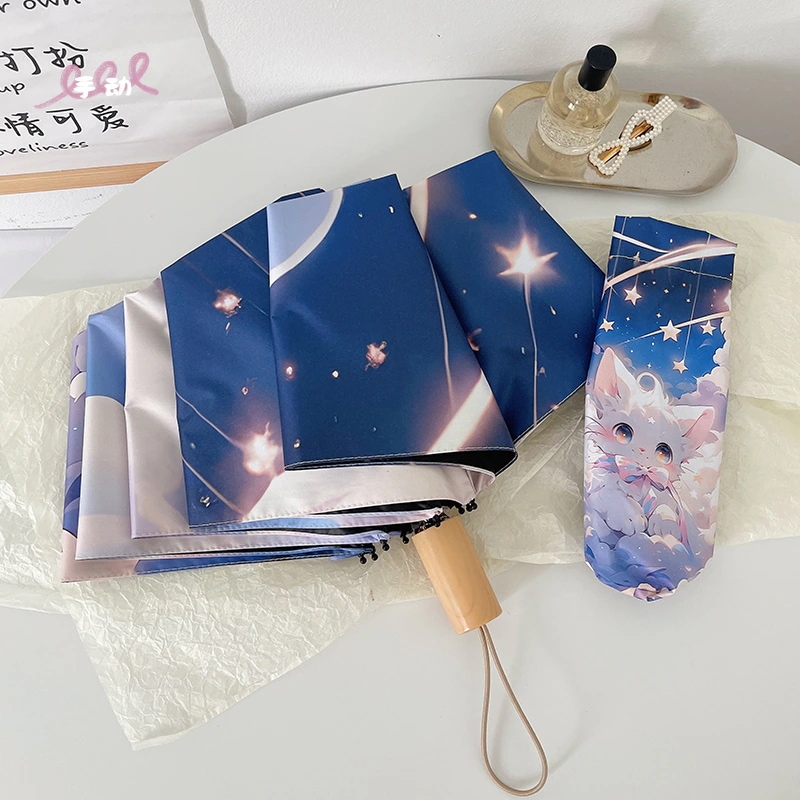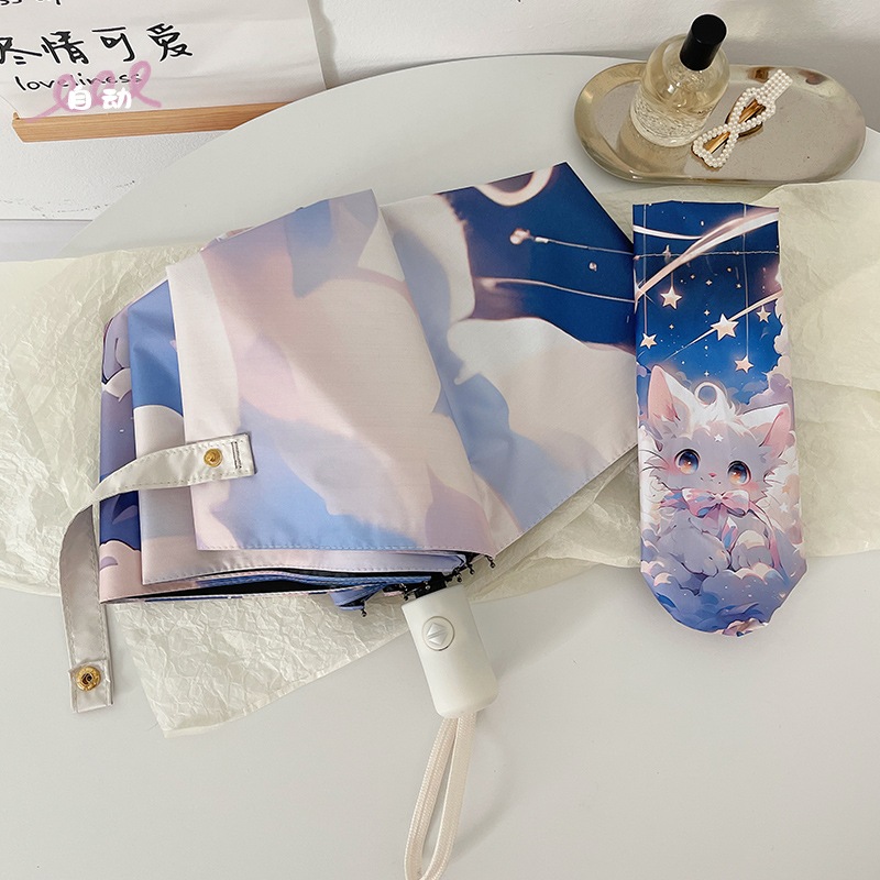 ファンタジーかわいい猫自動折りたたみ傘晴雨兼用日よけuvカット日傘レディースポータブル日傘