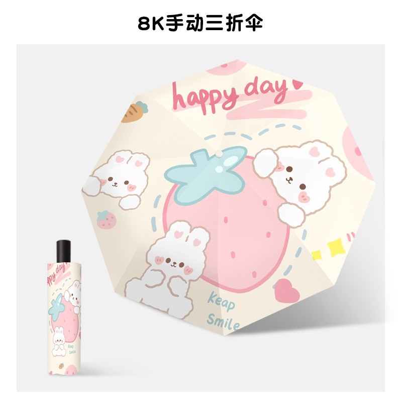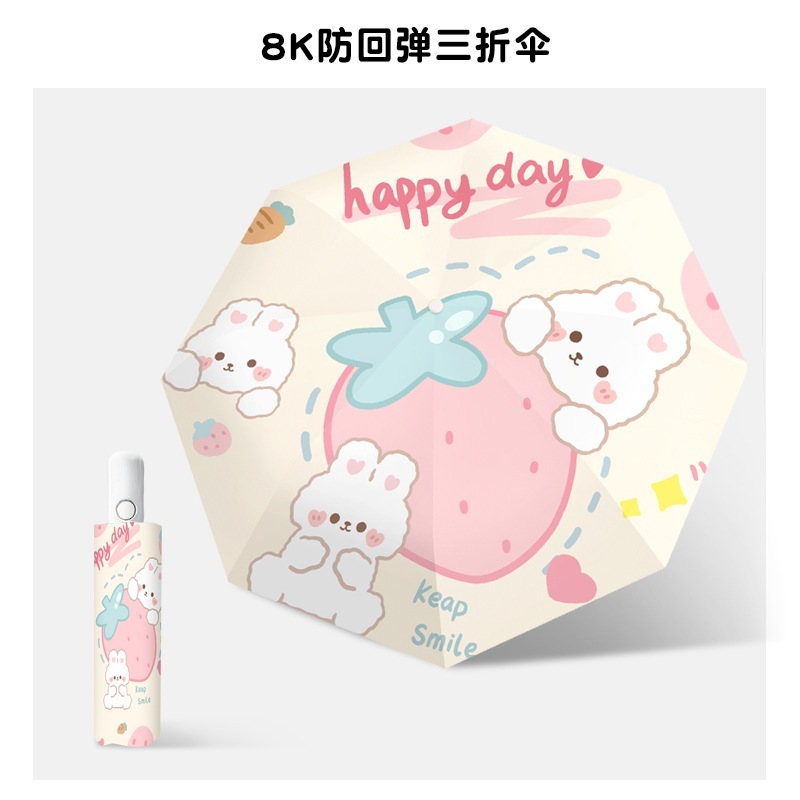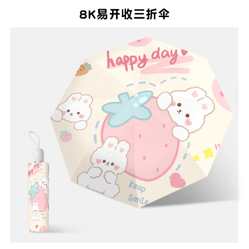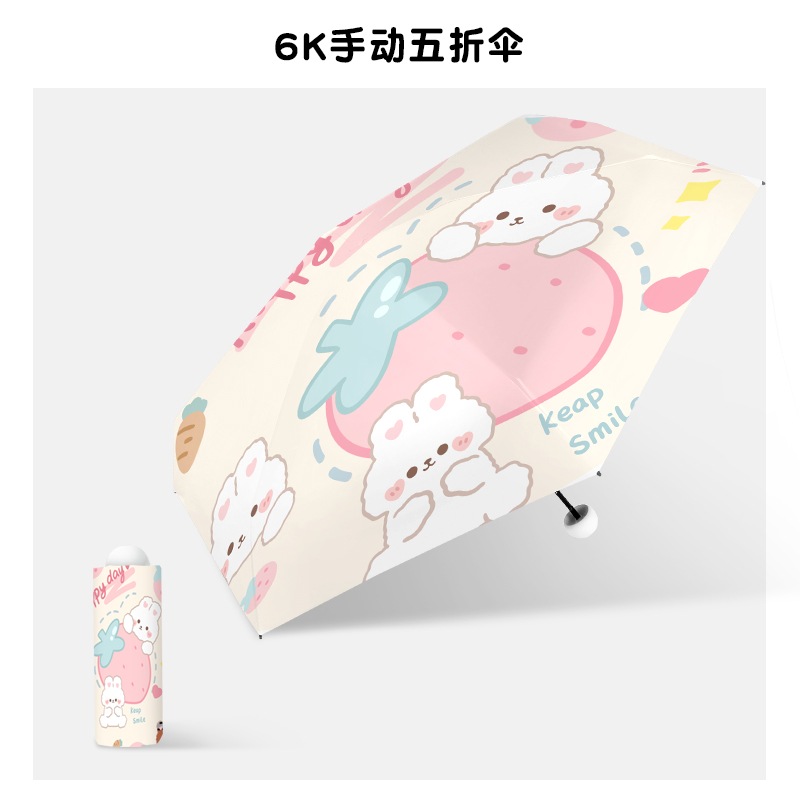 漫画ウサギの安全自動傘女性の日焼け防止抗 Uv 日傘雨晴兼用超軽量ポータブル折りたたみ傘