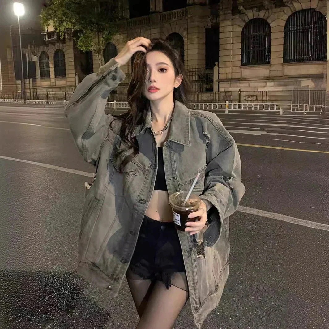 春 レディースファッション 2025 デニムジャケット デニム アウター ゆったり穴あきカーディガン 長袖 韓国 ジャケット