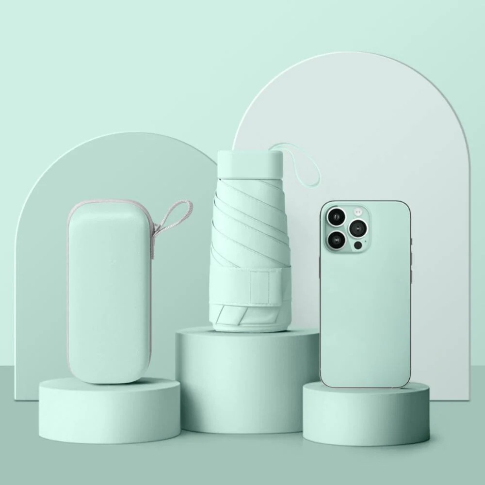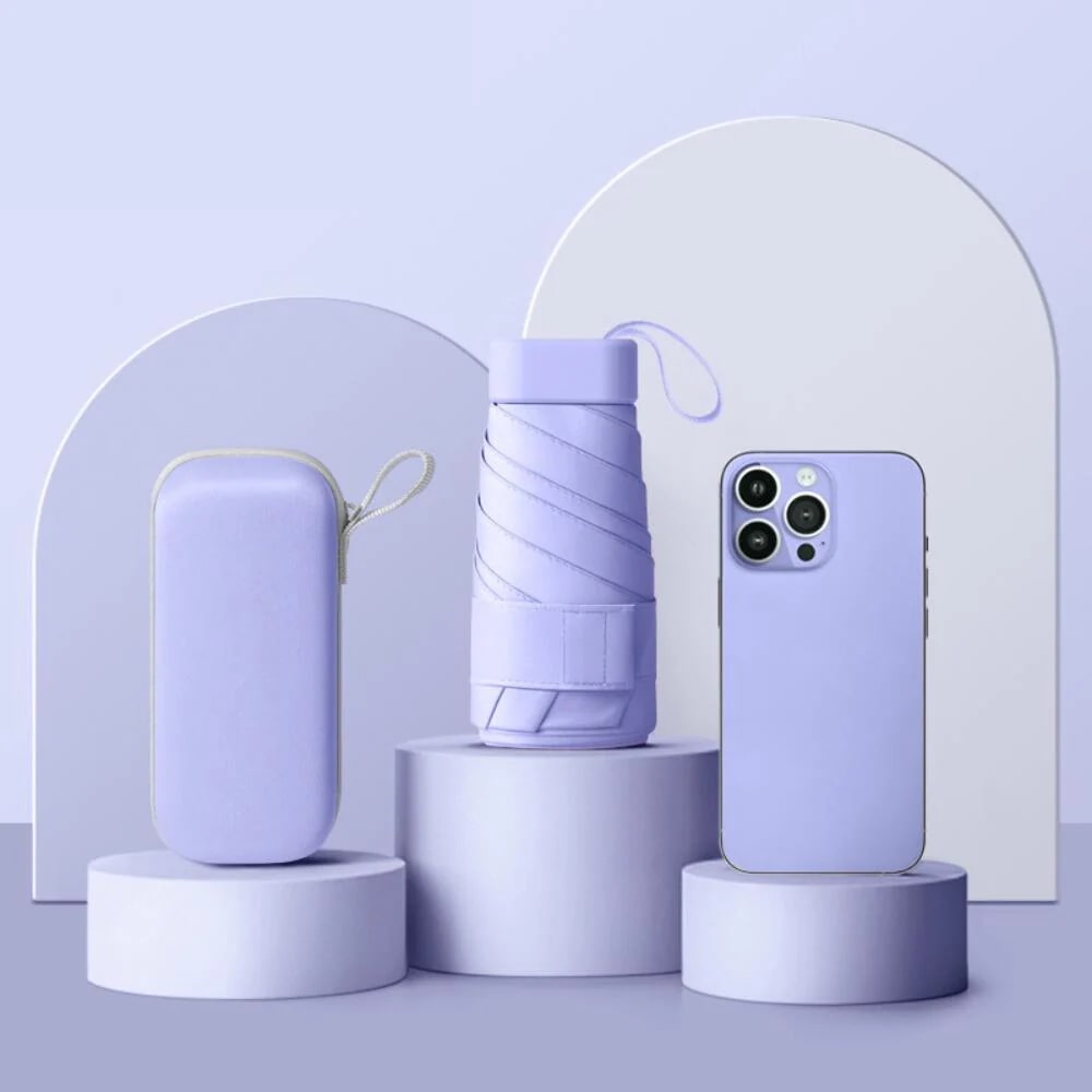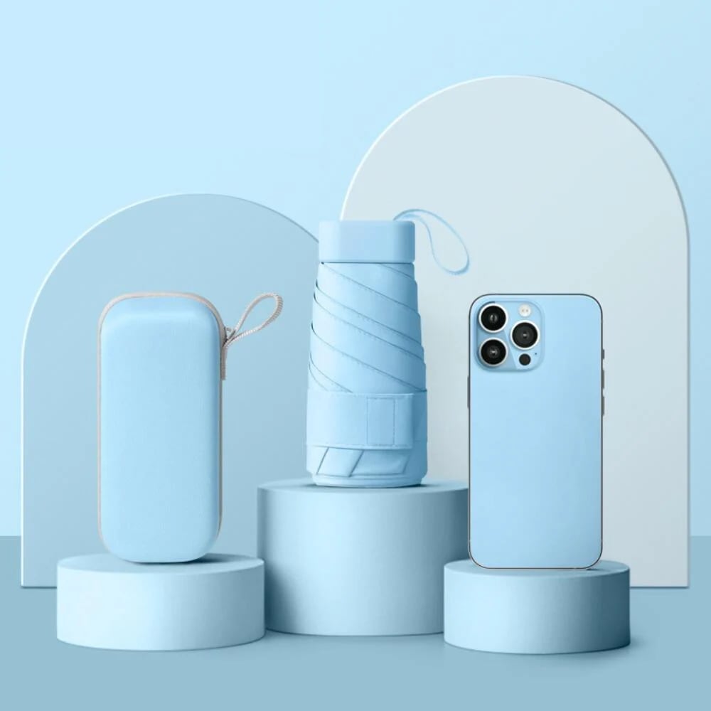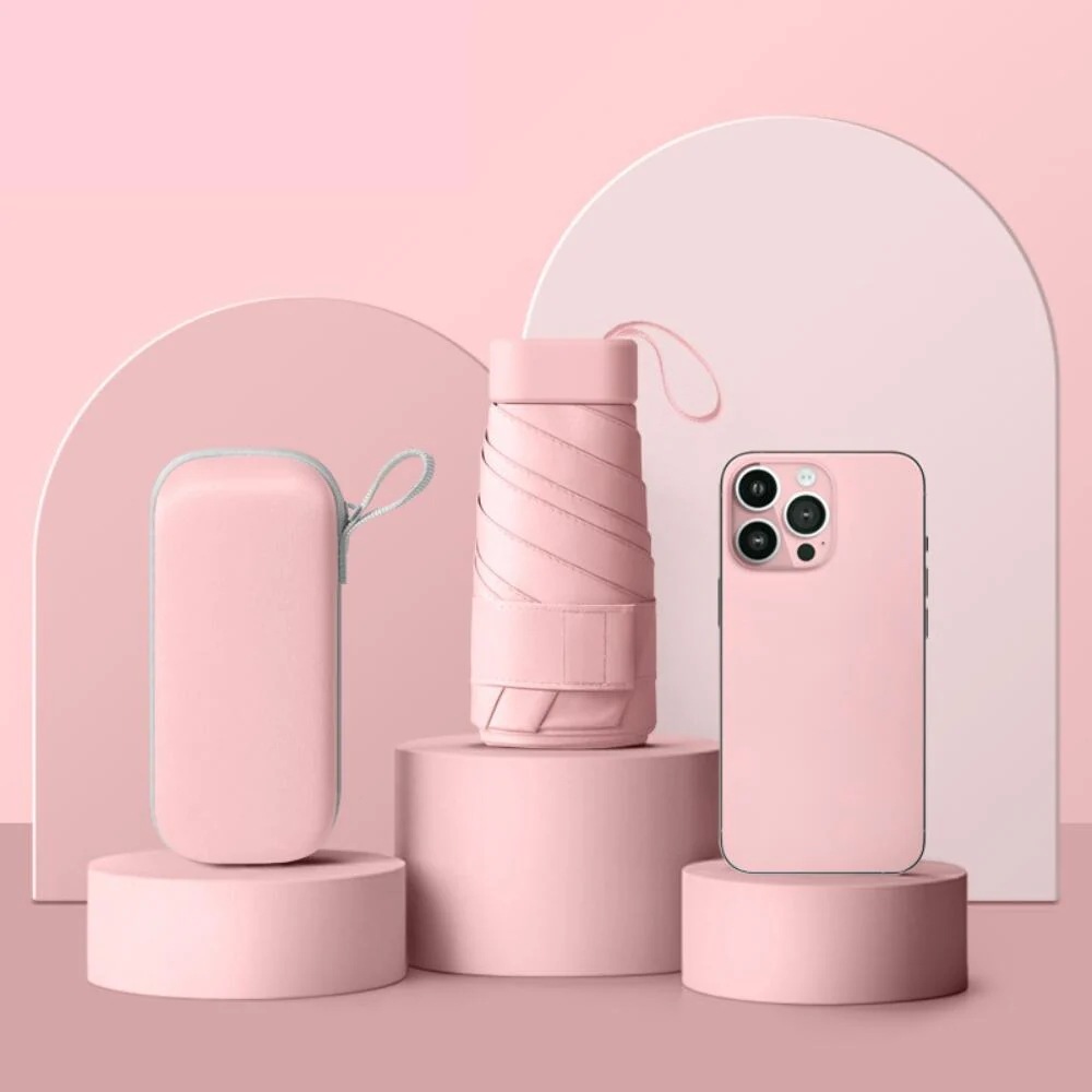 Prv【専用ケース付き! スマホサイズ 折りたたみ傘 】超軽量 撥水加工 晴雨兼用 コンパクト 日傘 折りたたみ 完全遮光 体感温度-13.6℃ UPF50+ uvカット 6本骨 韓国 韓国ファッション
