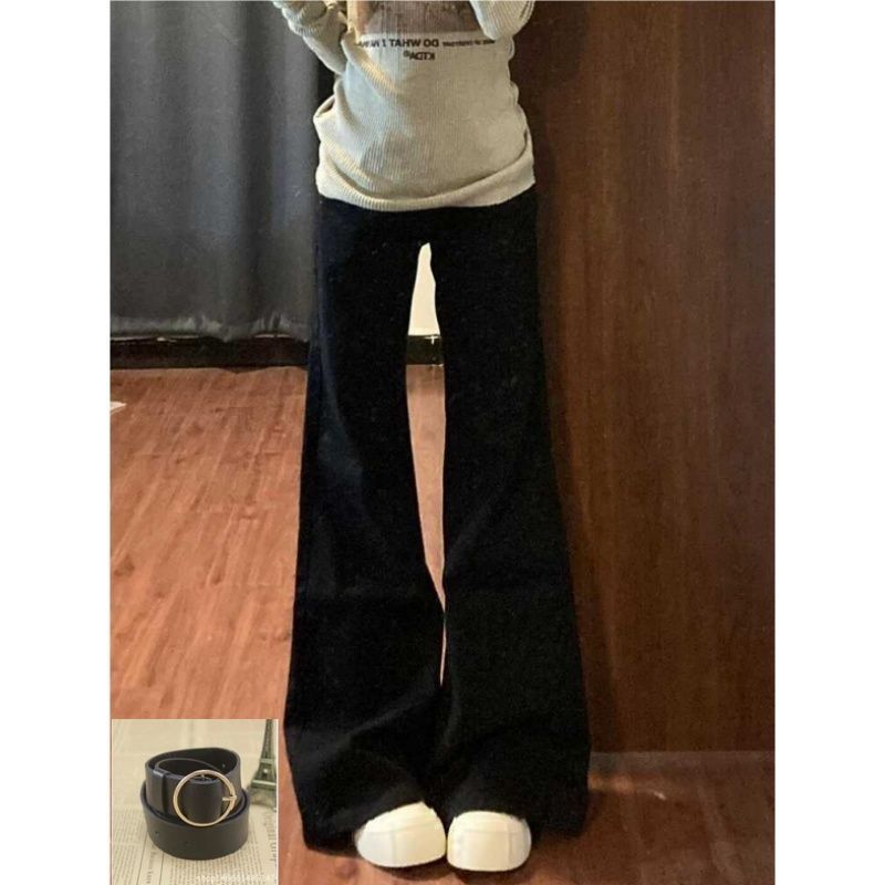 デニムパンツ 韓国ファッション ホットガールズブラックウエストマイクロフラアジーンズ秋の女性用カジュアルカジュアルルーズゆるい汎用床パンツトレンディ