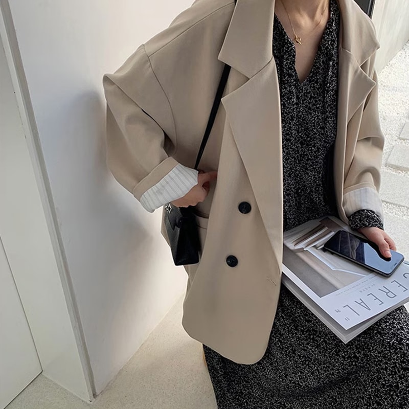 【本日限り激安】ロールアップ配色ジャケット ルーズ オーバーサイズ ゆったり レディース テーラードジャケット 韓国ファッション[3タイプ]