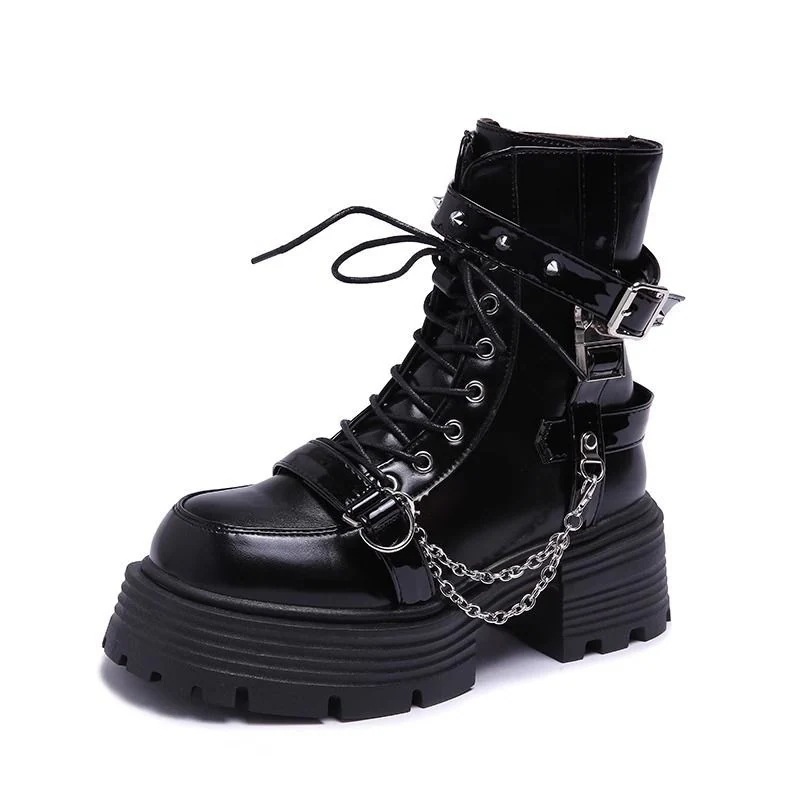 ショートブーツ 厚底チェーンリベット甘クールギャルロリータマーティンブーツ2025新作パンク英倫レトロショートブーツ ショートブーツ