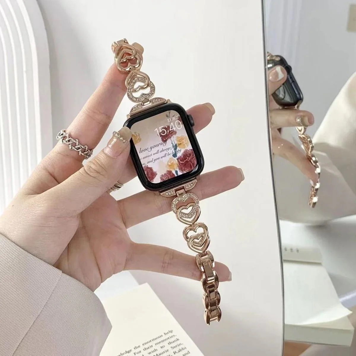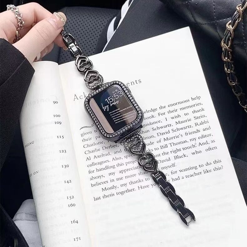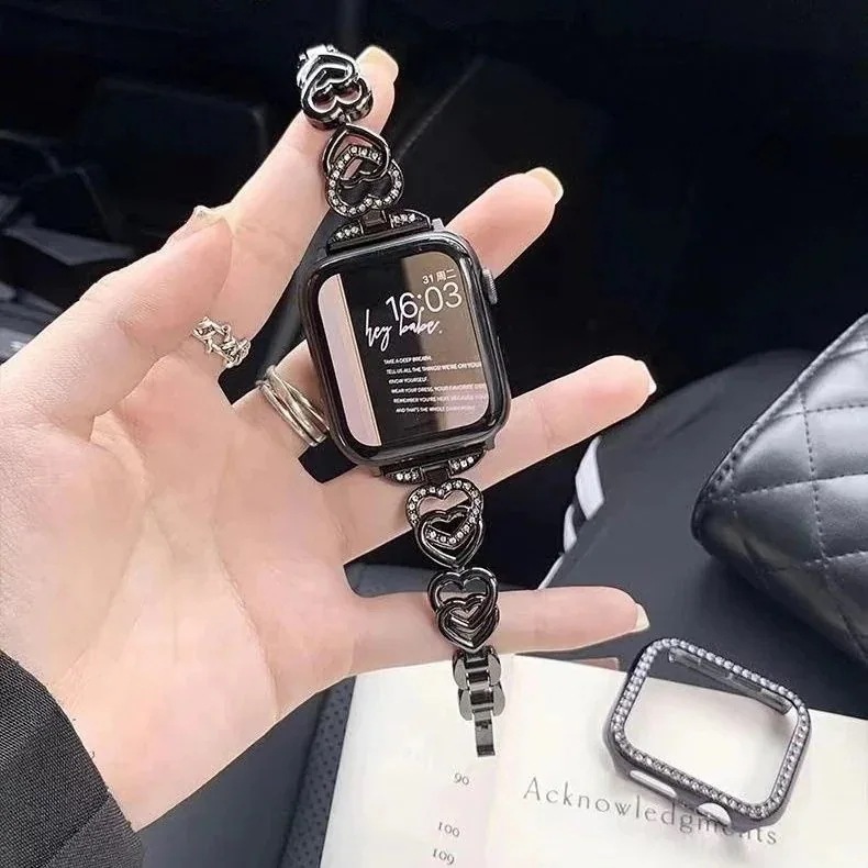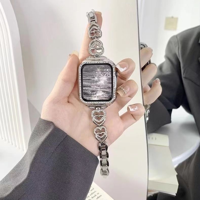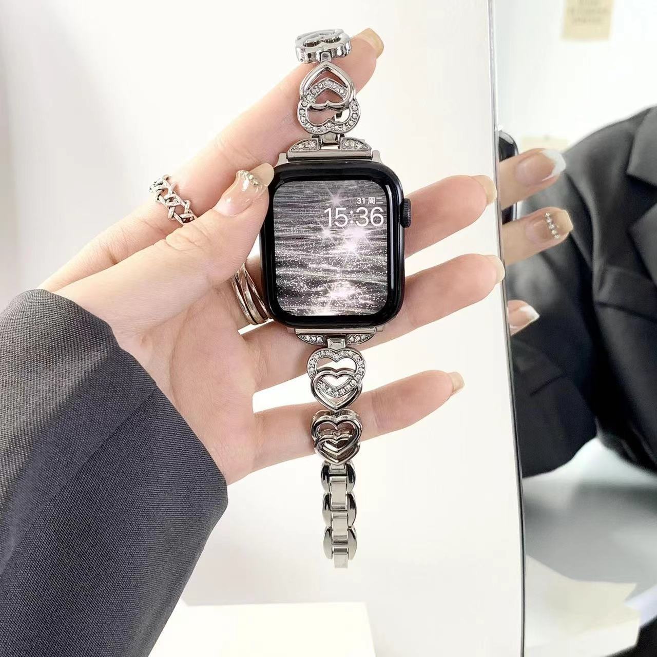 ap バンド watch apple バンド アップルウォッチ 本日の限定商品アップルウォッチバンドAppleiwatchSE/8に適合/ダイヤモンドダブルラブハート付きウルトラメタルスチールチェーン