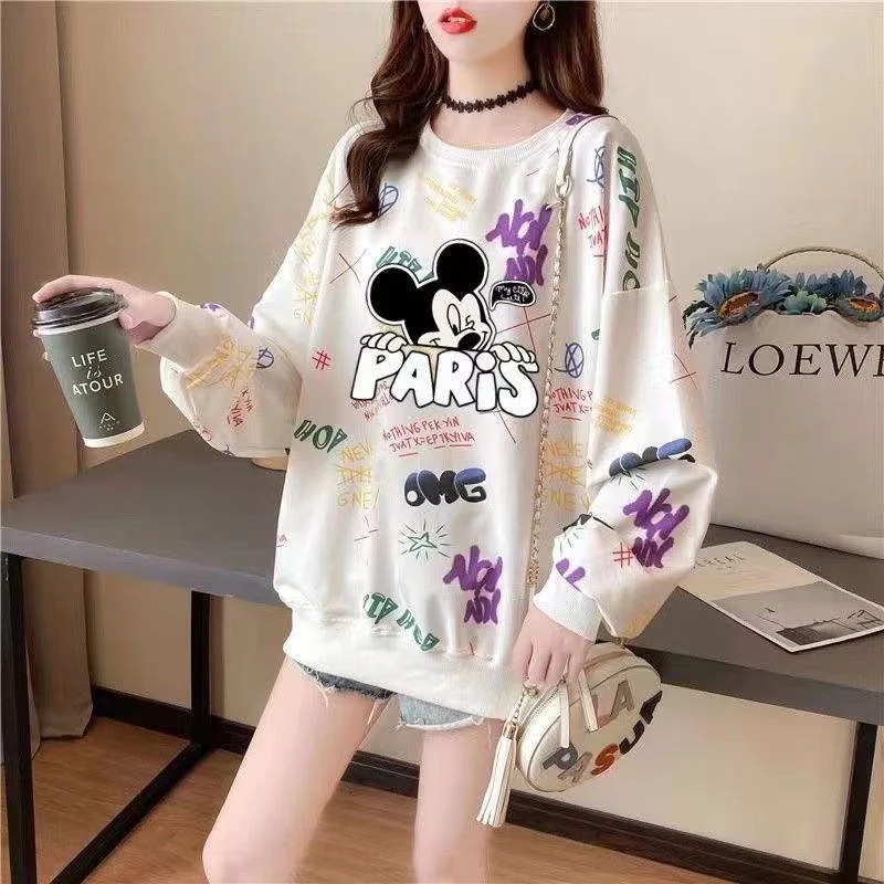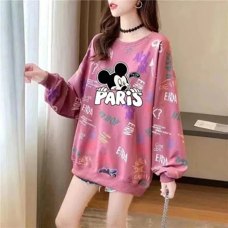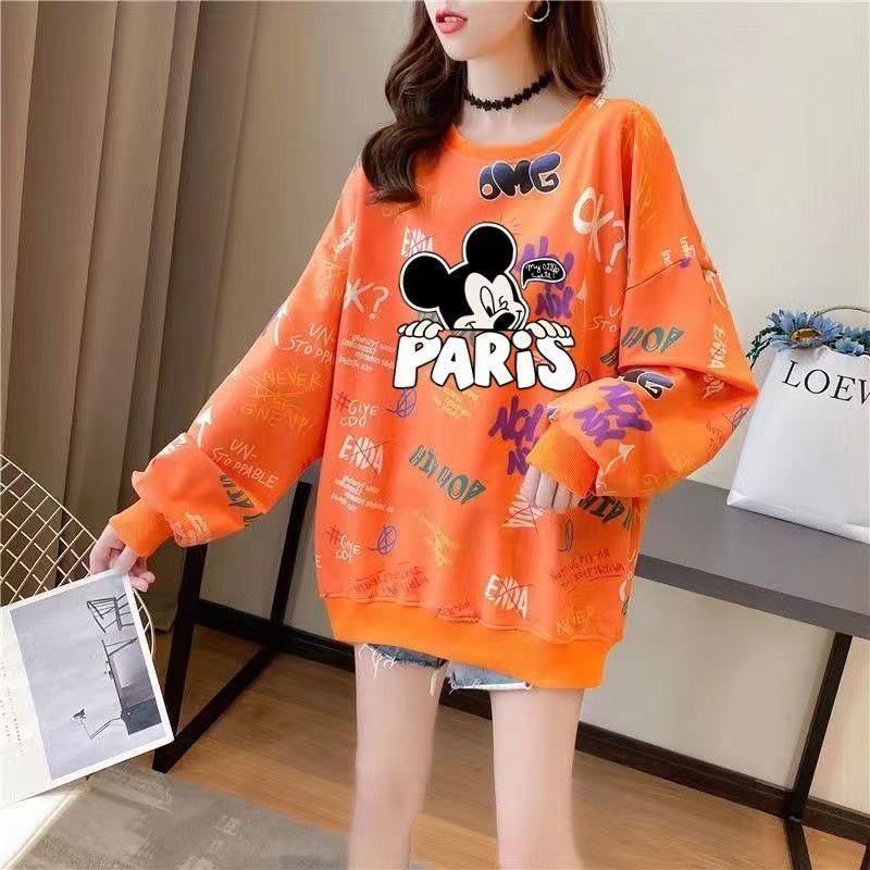 ディズニー ミッキー トレーナー レディース 韓 ファッション ロングTシャツ 長袖tシャツ ゆったり 可愛い Tシャツ カットソー ロング丈 着痩せ ロンT トップス 春秋