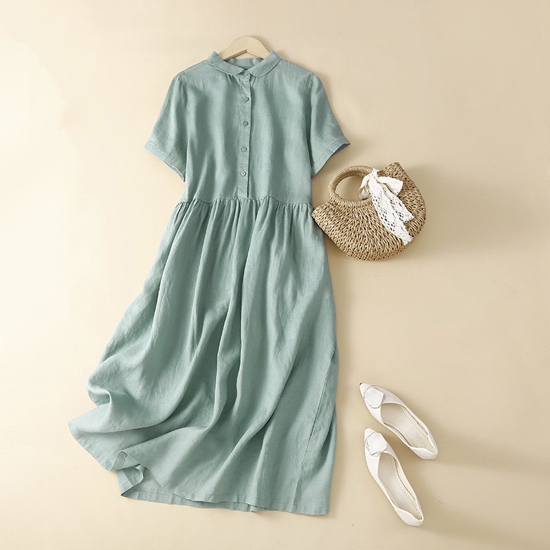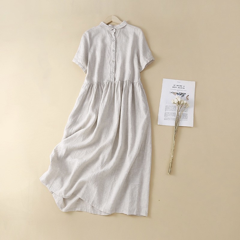 Tシャツロングワンピース リネンワンピース レディース 夏 シャツ ロング かわいい M ~ L韓