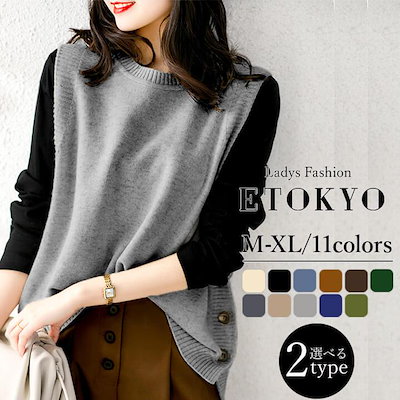 【即納】ニットベスト Uネック Vネック 2タイプ サイドボタン 温かい あったかい お洒落 柔らかい アシンメトリー ヒップカバー 体型カバー yctops32
