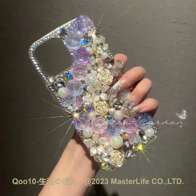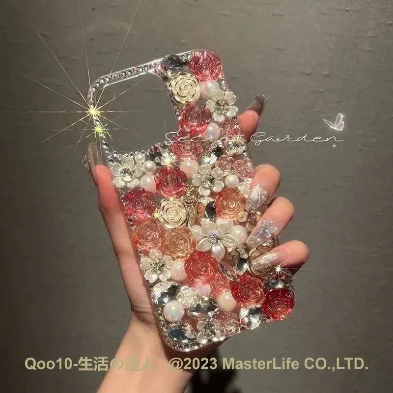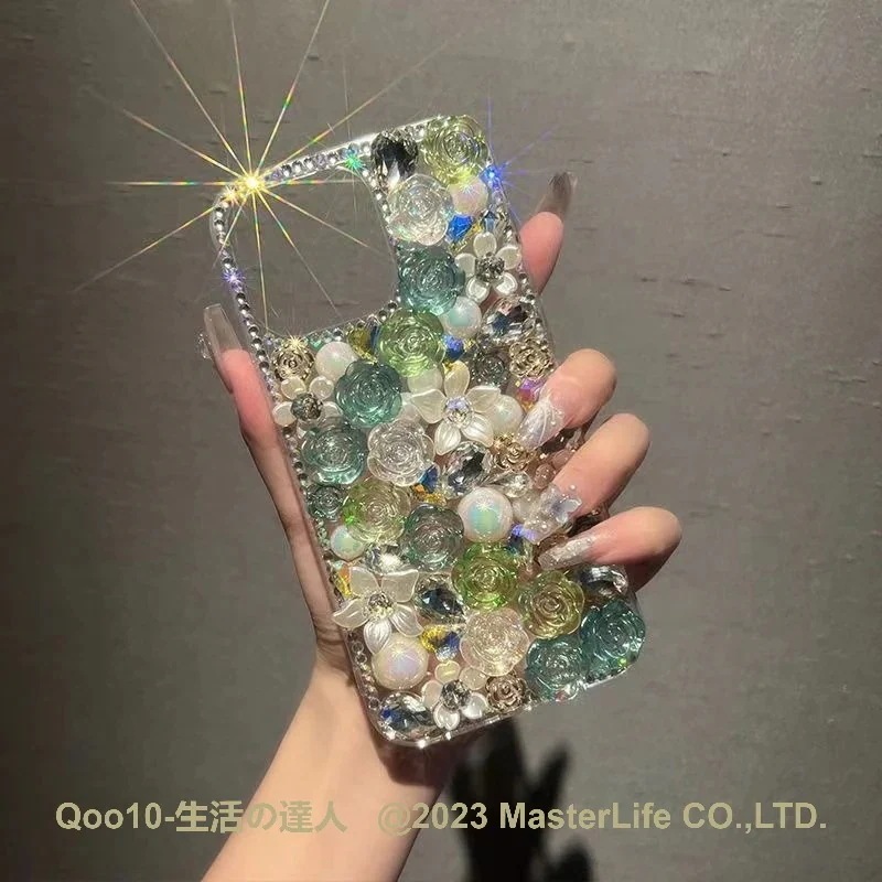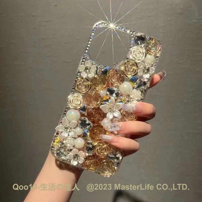バラの花 iphoneケース 手作り かわいい ちゃん ラインストーン キラキラiPhone15/15pro/15plus/15promax/iPhone14/13/12/11スマホケース