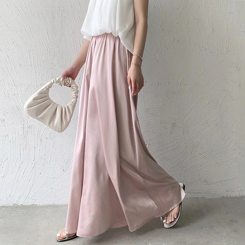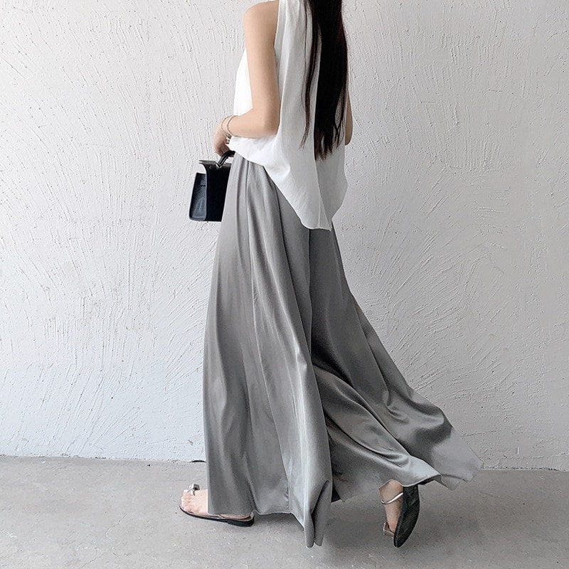 美シルエット!フレアパンツ 夏 ズボン アイスシルク ワイドパンツ 垂れ感 百掛け