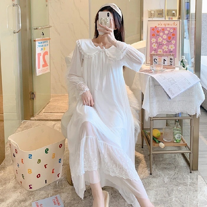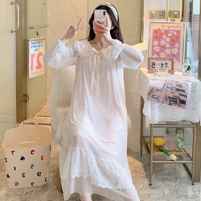 2025 春夏 パジャマ ワンピース 長袖 セクシー レース ルームウェア レディース 部屋着 韓国ファッション
